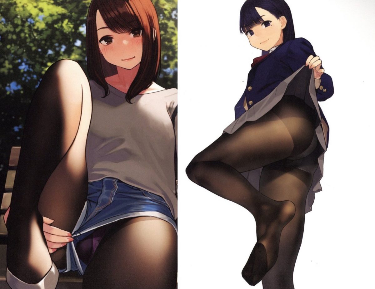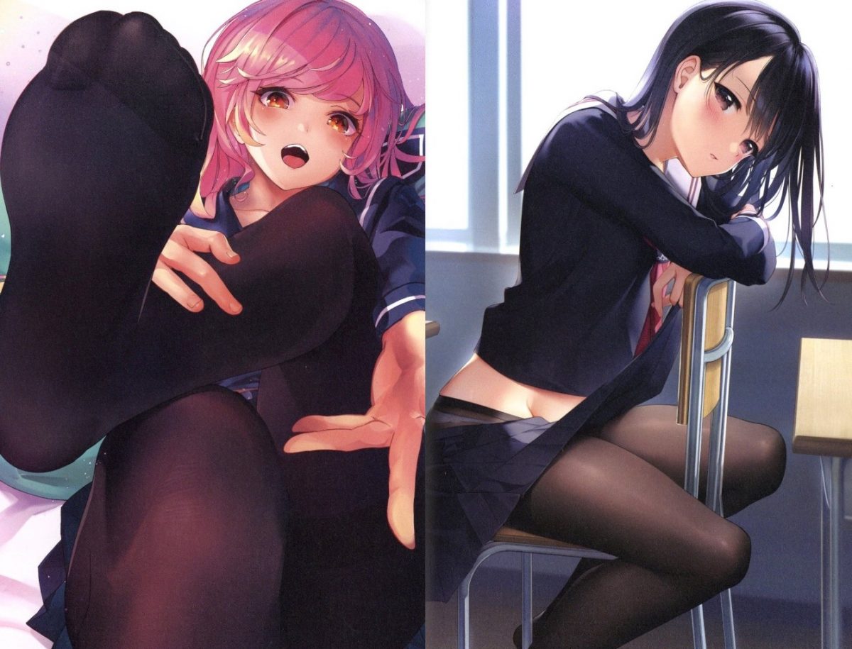 We love it when sexy fashion trends from Japan come along, and one of our favorites is the rise of kuro tights or dark tights, sexy silk stockings that look so good over a cute girl’s legs and butt. The master of drawing sexy stockings is artist Yom, who has created many amazing artbooks as well as the Miru Tights anime. And now there’s a new artbook called Kuro Tights EXTRA that’s a celebration of girls wearing dark tights!