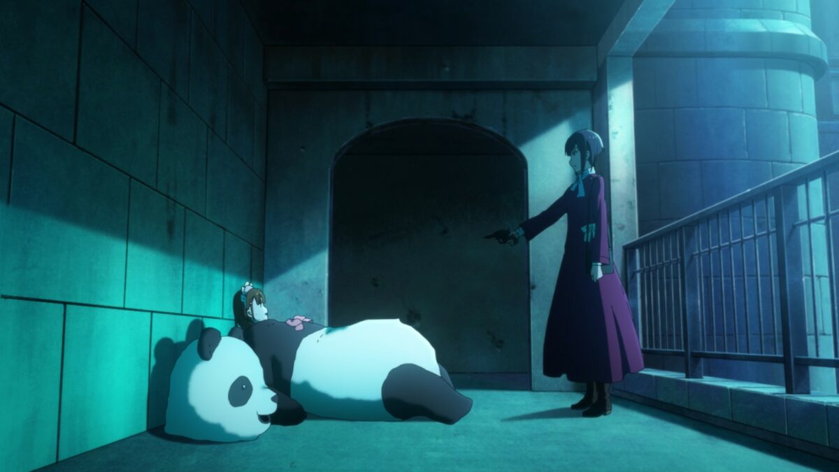 Finally, Akiba Maid War will spill the panda’s story. She sounds like every other naïve girl to come to Akihabara to become a café maid. Oho! Okachimachi remembers Suehiro from her past. Then Okachimachi needed to shoot the head of another maid café! And we’ve caught up to the first scene of the first episode! Okachimachi was the maid who shot Ranko’s boss! And Suehiro was there to kill her afterward! Dead maids tell no tales. Okachimachi escaped his choking attempt, only for a car to strike her. Lucky for her, Suehiro thought his job was done. But she survived and dressed like a panda mascot. Then took the train station’s name across the street from the panda station. Tenchou discovered her years later, still passing out flyers at that same intersection.
