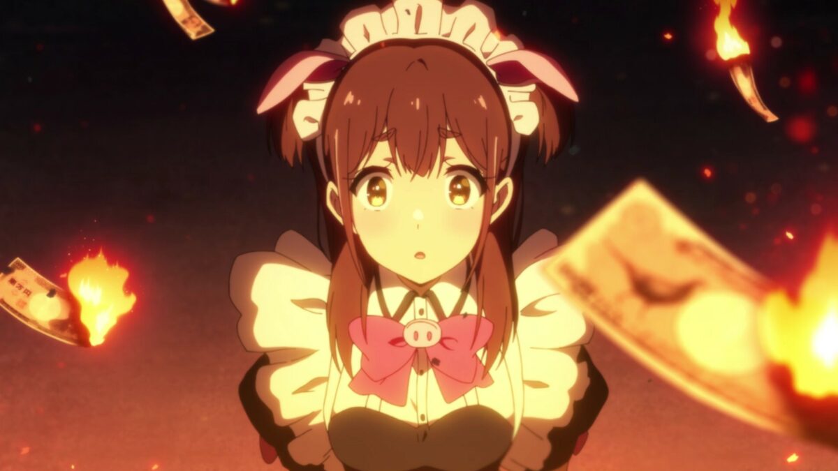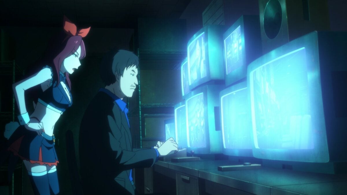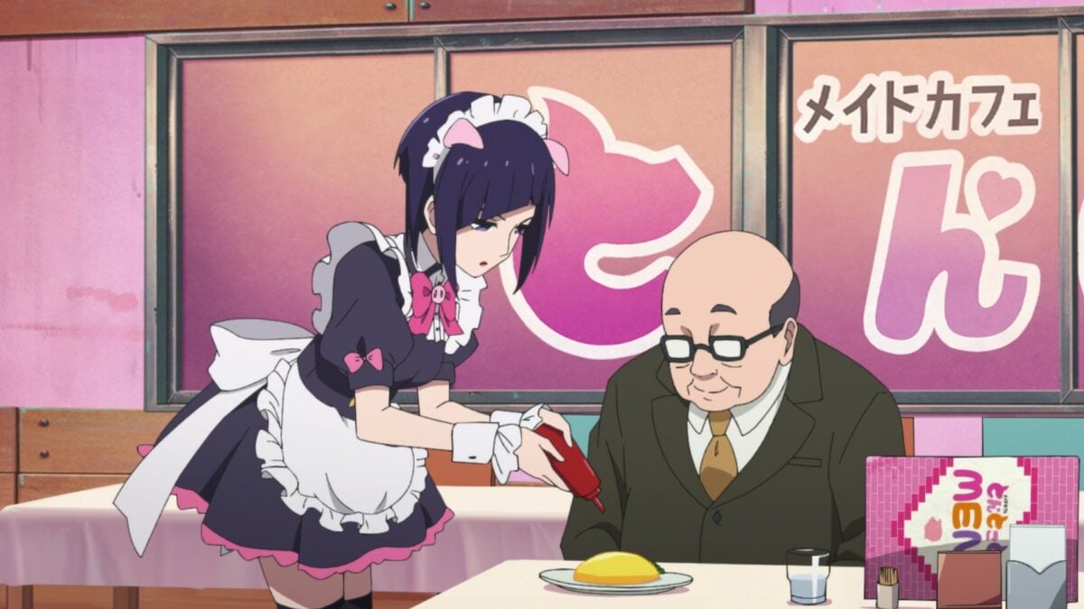 The Hidive translation team had fun with the second episode title of Akiba Maid War: 賭博萌キュン録 ゆめち (tobaku moe kyun roku yumechi – gambling moe kyun record Yumechi). Hidive translated “moe kyun roku” into “Adoracalypse,“ a portmanteau of “adorable” and “apocalypse.” The literal translation is the straightforward manga otaku slang of “Moe kyun record.” Moe (萌え, もえ – sprouting, budding) is a magical word that encapsulates why a fan likes a certain waifu. These days, moe is self-referential in the otaku space. It’s fun to see “moe” used unironically in a maid café from 1999.