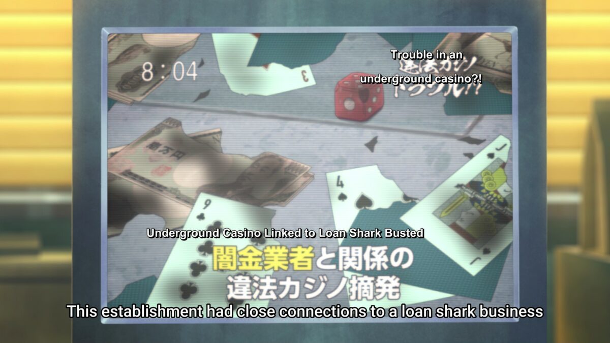Akiba Maid War drew a connection to the most recent anime about gambling. 賭博 (とばく, tobaku – gambling) is different from the “gambling” we see in Kakegurui. The Japanese kanji 賭 (kake, かけ, bet, wager, gamble) covers any context of risk. Tobaku refers to gambling as a pastime. So, one can bet (kakeru) capital on a new product line, but one goes to a casino for gambling (tobaku). The maids exchanged their lives for chips before blowing up a casino, so their situation was closer to Kakegurui’s circumstances.
