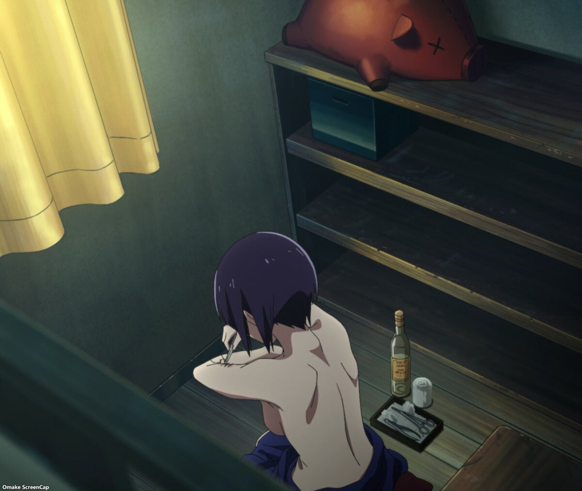 It’s the morning after for Nagomi. Ah, good. Ranko is not a Robo-maid. She’s a Rambo maid! Ranko stitches up her bullet wound with a bottle of tequila. Akiba Maid War is hardcore. Hey! Ranko and Nagomi made the news! The newscaster says feuds between Akiba maids have been quiet recently. The Oinky Doink Café maids wear cute pajamas. Shiipon’s conversation about a shot-up café is so casual. Fun! Tenchou is at a driving range with other animal ear maids! For some tee-shot punishment. The Otaku Enforcer is angry that his plan turned into a massacre. He wanted to provoke the Moonbeam Café maids to kill a piglet maid to cause a gang beef. Whoops! The hogs roasted a whole cow! And Tenchou still owes her dues.