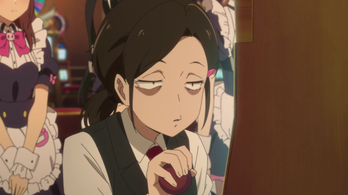 Of course. Akiba Maid War will not abide by any positive energy. As soon as Nagomi felt better, Tenchou announced that the Oinky Doink Café was going out of business! Wow. She is a ball of terrible luck compounded by worse decisions. What a surprise! A loan shark owns a maid casino! We’re watching a gangland tale through and through. Tenchou used the Oinky Doink Café for collateral to get a loan to pay off her “sweets money.” Then she went to the casino to “invest” it. Of course, she lost it all. Oh, no. Tenchou thinks she can win all her money back!