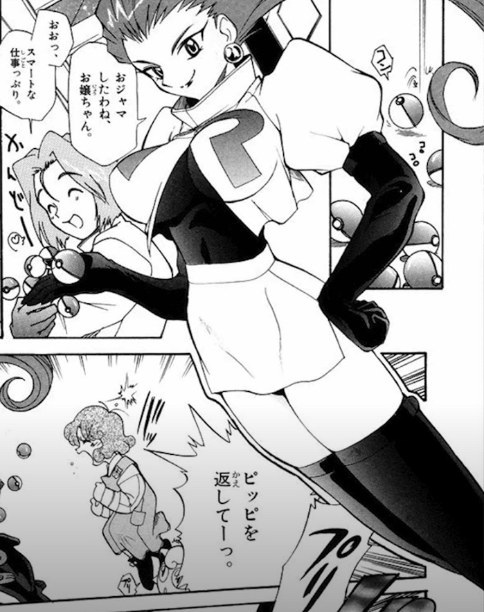 Jessie appears in the vast majority of the Pokémon anime series, where she is voiced by Megumi Hayashibara. Her highlight appearance is in the manga series The Electric Tale of Pikachu, where she, like every other female character, has a sizeable bust in the Japanese version.