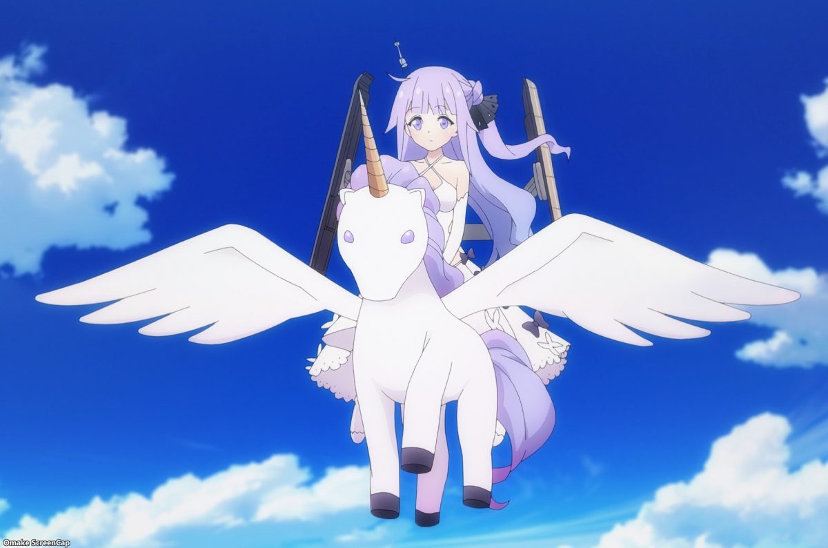Everybody’s fighting now. Red Axis, Sakura Empire, and Azur Lane Alliance. Thank goodness we get some sexy shots of Prinz Eugen again before the end of the season. I still love the metallic sounds of the ship girls transforming. Fun. Unicorn blew up something. Ayanami will fight to save everyone and smack some sense into Kaga. Zuikaku had first dibs, though. Ooh, the big reveal. Amagi is with Akagi, the supposedly dead ship girls. And the bigger reveal — a tactical nuclear missile! Akagi does not have the look of a sane person right now. Next time, real war!
