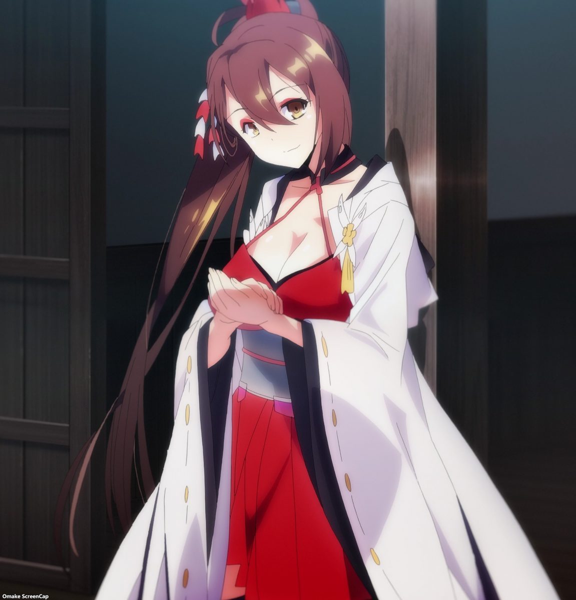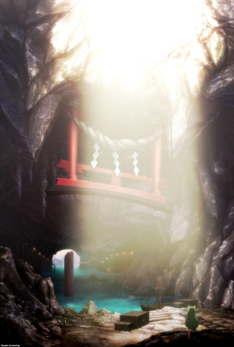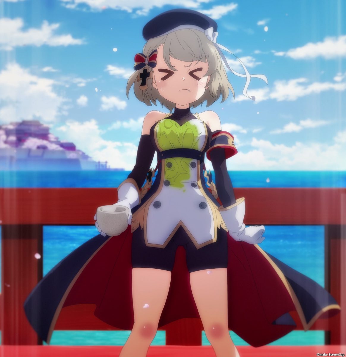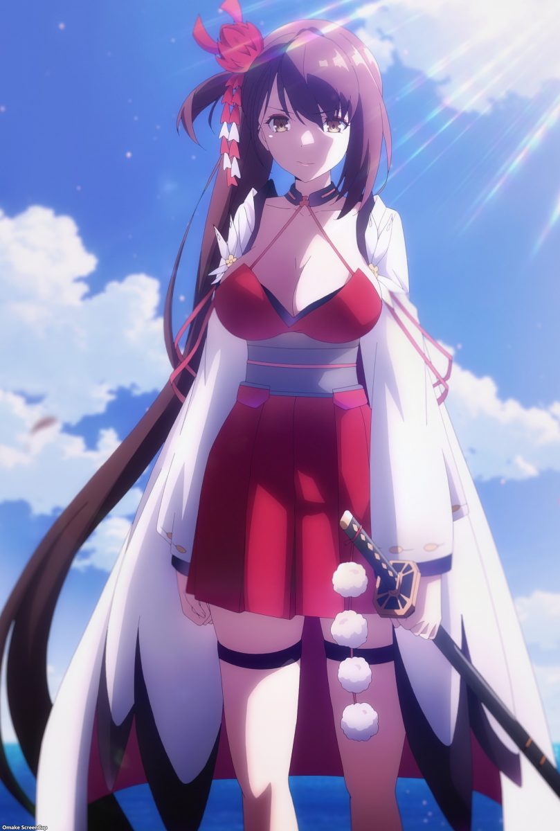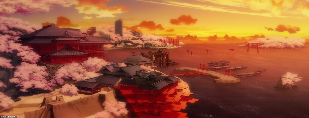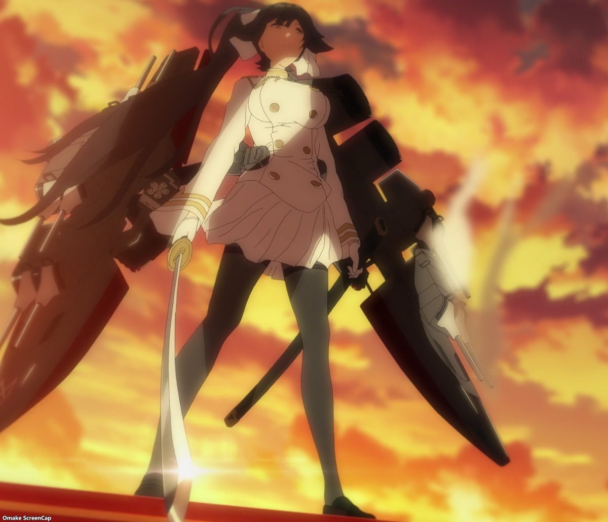 Something else very cool about this week’s episode was the noticeable attention paid to its artwork. The lighting and atmospherics team for Azur Lane must have jumped off the third episode early to work on this one. Just look at that beautiful ambient light, those sharp shadows, and those rich background colors. Enterprise’s flat face was in cloudy, stormy seas last episode, so who cares, right? Well, they also made Belfast’s face flat, so I care! But the producers made up for that slight downgrade in animation quality with this episode. That was the correct choice, since this was the introduction of the Sakura Empire’s naval base. I really enjoyed the fantastical setting of a whole island made to look like the grounds of a temple complex. Having the fox spirits running around was a nice touch too.