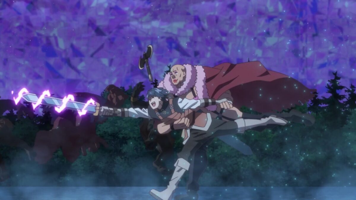 Let’s get to the parts of the end game where every supporting character has a hero scene. Vulcan has a fire hammer. Beheneko recycled Stella’s taunt, absorb, and release mechanic. It also repeated Aria’s twin slashing. Har. Arnold and Cedric have their own version of pairs ice skating: Yaoi on Ice. Fione and Leo defend their village, while Leona loves her two-hit area-of-effect attacks.