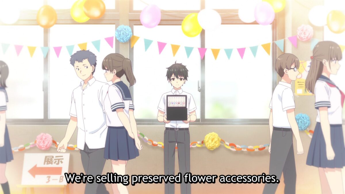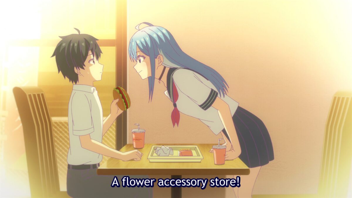 To prove that his goals are more than a pipe dream, Yu-kun endeavors to sell 100 accessories at a school festival. How and why this would prove anything is beyond me, but such is life. Unfortunately for Yu-kun, he tanks. But life decides to help the young entrepreneur by sending a kawaii blue-haired waifu named Himari to help him. And with her, he manages to sell his entire stock.