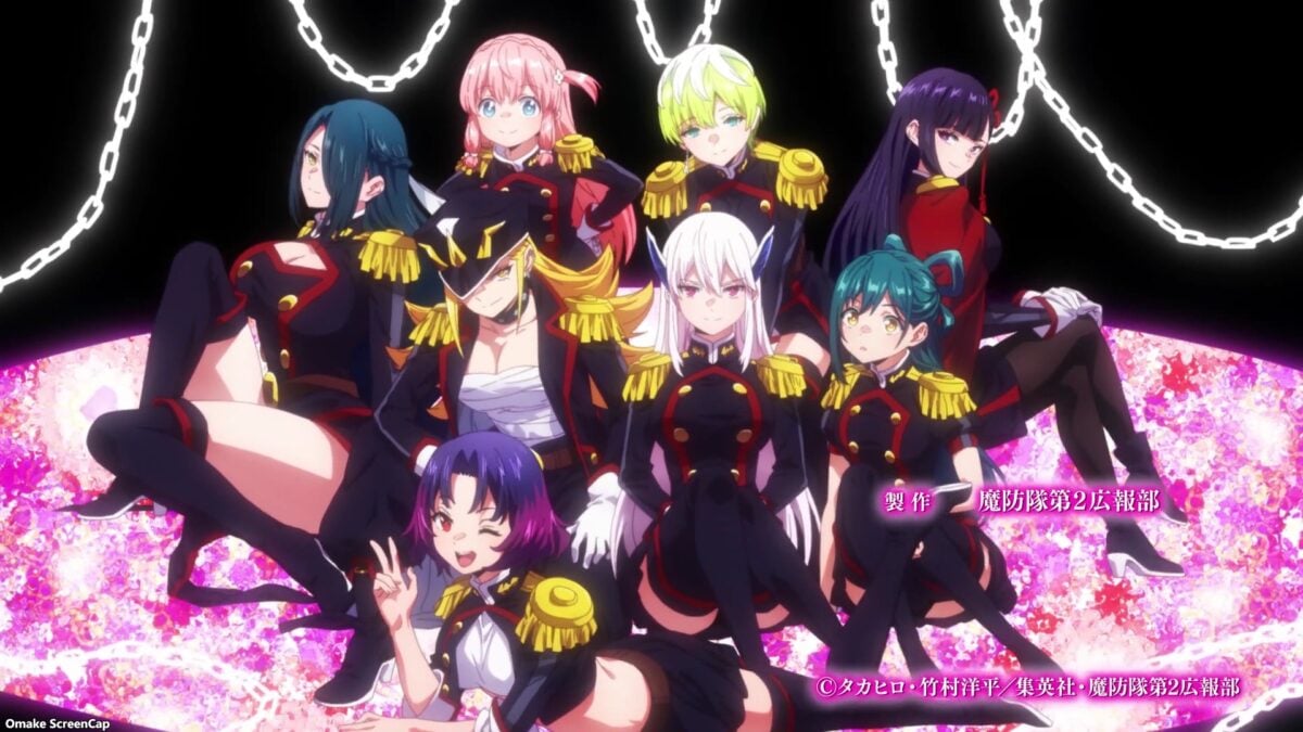 New season, new opening credits. It features all nine Demon Defense Squadron Commanders. That’s one way to count to nine, but I racked up to eighteen. Emphasis on “rack.” Himari and Yachiho’s mother could count double!