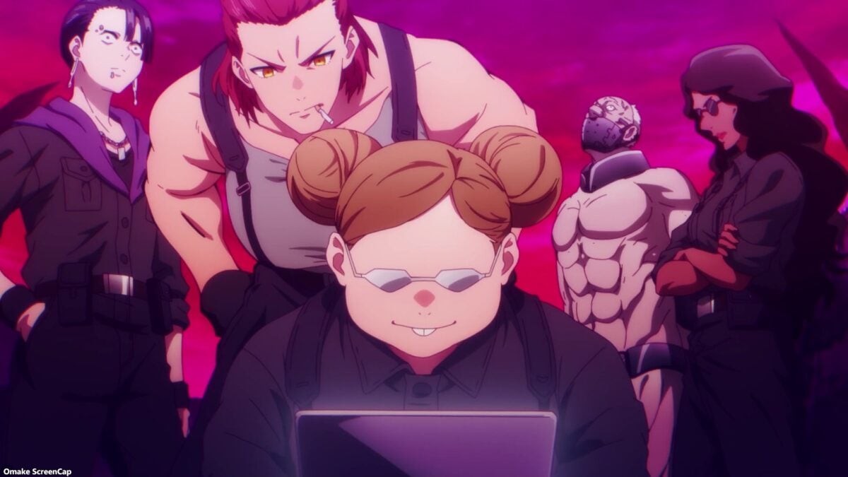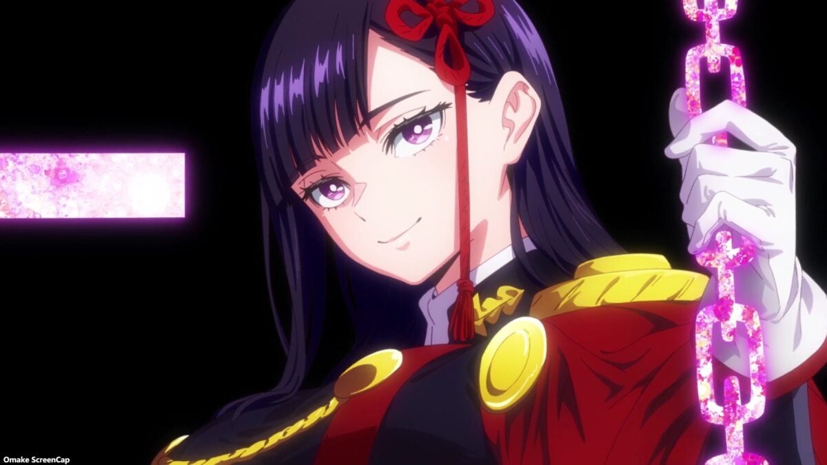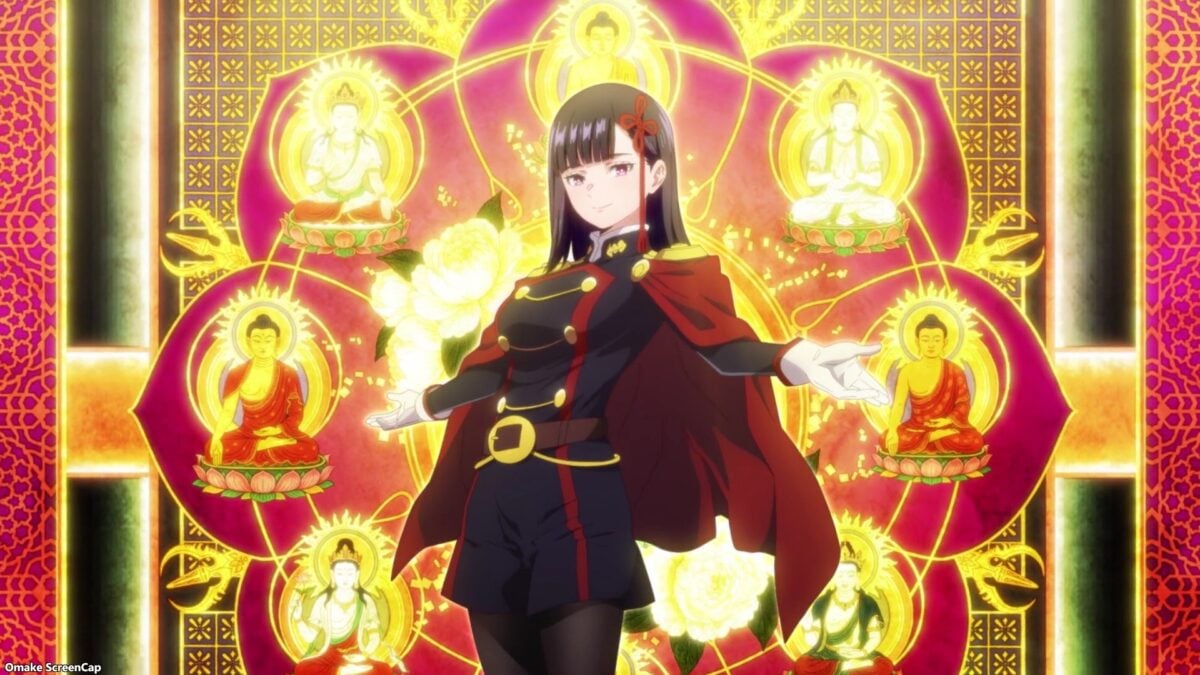 Lame. The Shuuki army leaders are foreign terrorists aiming to steal Mato Peaches. They even have a twisted version of Yuuki with them — a gimp instead of a slave. They’re no match for Ren’s collection of skills within her peach ability. She’s like Neo from the Matrix. I’m sure Chained Soldier will explain the inner workings of Ren’s abilities during the season, but her “broken” skill stops others from using their abilities. The fight is over before Kyouka and Yuuki even arrive.