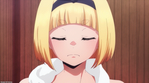 Kyouka’s Slave skill returns to first principles at Chained Soldier’s halfway mark, ending the playful, sexy fan service from the new girls. Only serious sexy fan service as the Demon Defense Force battles the Eight Thunder Gods on their turf in Japan. I’ll embrace the brighter color palette.