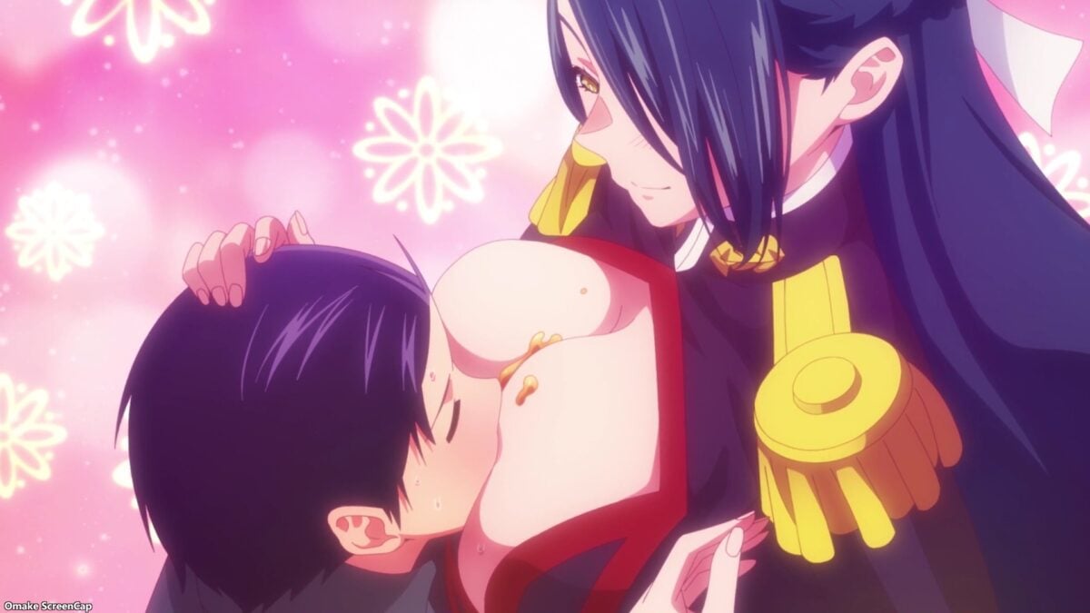 Her Slave form exhausted Yuuki, so he craved a sweet reward. How about honey-drenched oyakodon? Yuuki loves kissing Himari. And what will Fubuki do with that jar of honey? Paizuri! That’s the first time we’ve seen her blush. She promises to relieve his “tension” whenever he desires. There’s more in store! Sweet lingerie! Fubuki embraces Yuuki’s “indecency,” calling it “compassion” to cater to his sweet tooth. Boo! Still no glimpse of Fubuki’s nipples!
