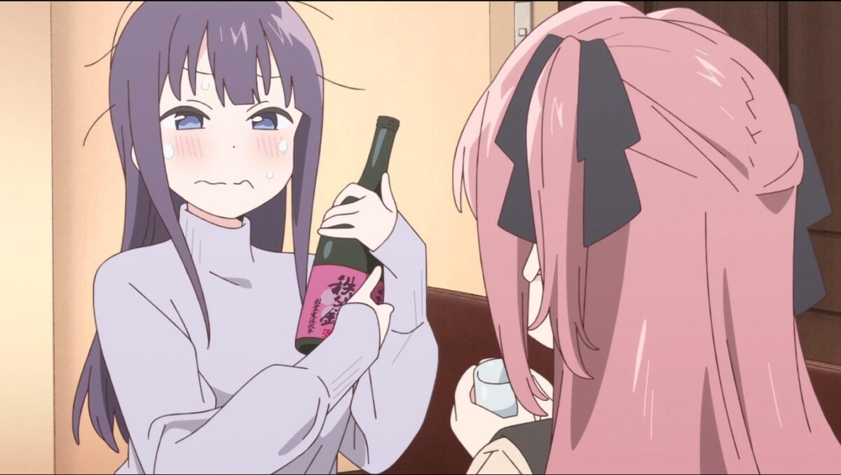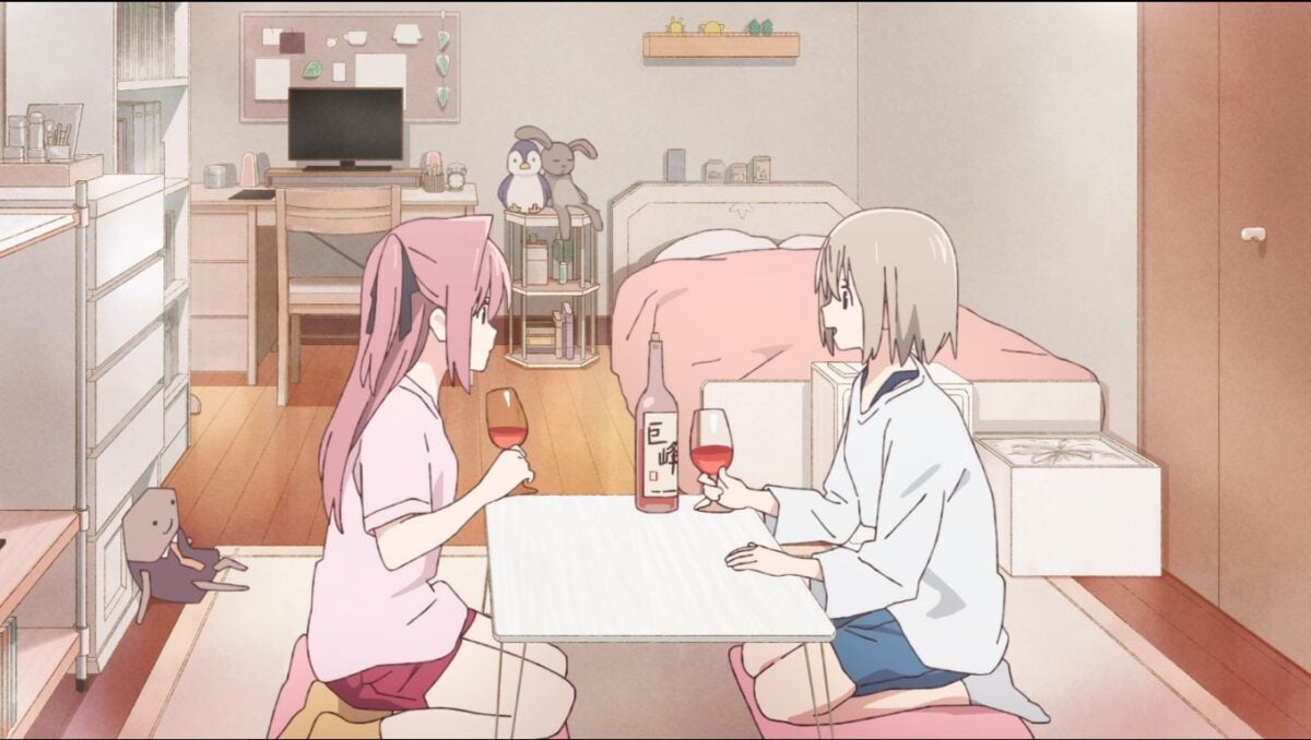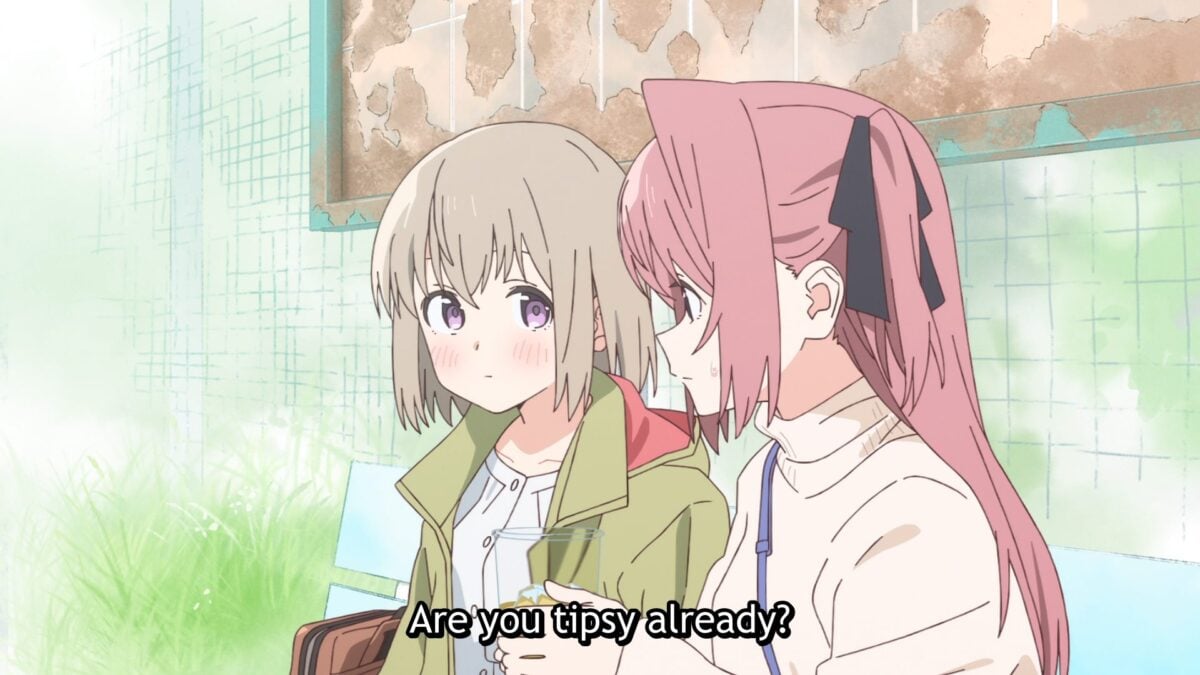 Either way, let’s get the synopsis out of the way. The anime follows Botan Kamiina, a 20-year-old college freshman. While Botan resides in a college dorm, she’s yet to make friends with any of her dorm mates. But when their dorm’s resident assistant, Ibuki, wanders off to drink alone, a curious Botan follows. And when Botan learns that Ibuki drinks alone due to alcohol-induced hiccups, instead of laughing at her, Botan joins her in a drink. That drink was Botan’s first, and with that, friendship (and yuri-ness) bloom.
