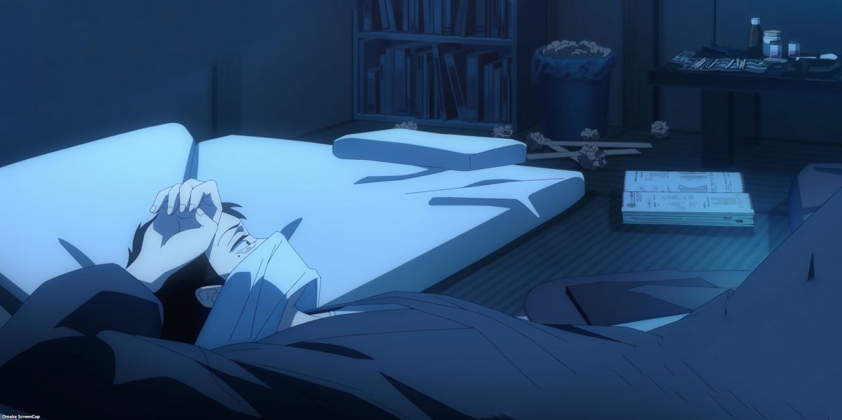 The plot for this episode of My Dress-Up Darling felt like a psychology experiment. How much stress can we pile onto Gojou before he breaks? He’s already slow at making clothes for dolls, but now he needs to make a complicated one for a life-sized doll. As if that wasn’t bad enough, his grandfather hurts himself, the school is in the middle of midterms, and Gojou needs to cater to Hina doll customers. Gojou even put more stress on himself because he thought Marin gave him a deadline.