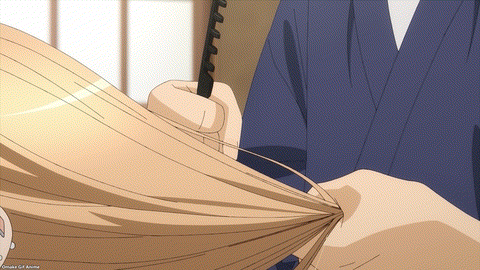 It’s not Marin’s fault, but she’s already had experience chasing Gojou down for avoiding her. Gojou is a high-maintenance friend. Dude, has anyone ever ghosted Marin before? She even brought him a beef bowl! These scenes in My Dress-Up Darling make me love Marin more. Deservedly so! Ack. What a mess. Gojou is in pure death march mode. He knew Grandpa needed his brushes to practice painting doll faces, but he’s been neglecting his own drills. Still, the priority should be on Marin’s outfit since she’s his Sugar Mommy. Push through that moment of self-doubt, Gojou-kun! Do the hard job for the customers’ smiles. Do it for Marin’s smile!