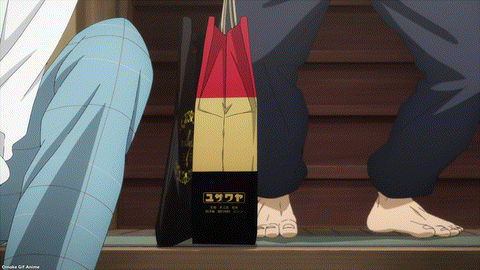 Oh no. Gojou thinks he needs to finish Marin’s costume in two weeks. My Dress-Up Darling gives us foreshadowing. Watch out for suspicious persons on the train! Gojou looks suspicious as he convulses in a worrying fit. I love how these episode titles are dialogue lines. Finding out who says the title and the line’s context is a fun game every week.