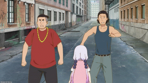 Dragon Maid also used mirroring, with guest star Chloe having a similar experience of running away. They arrived in New York through the power of different monsters, though. Kanna, the dragon, flew straight to a bright and sunny spot while a mafia gang kidnapped Chloe and brought her to their headquarters. Both children realized that home is where their loved ones are. And both Chloe and Kanna needed to reconcile with their families.
