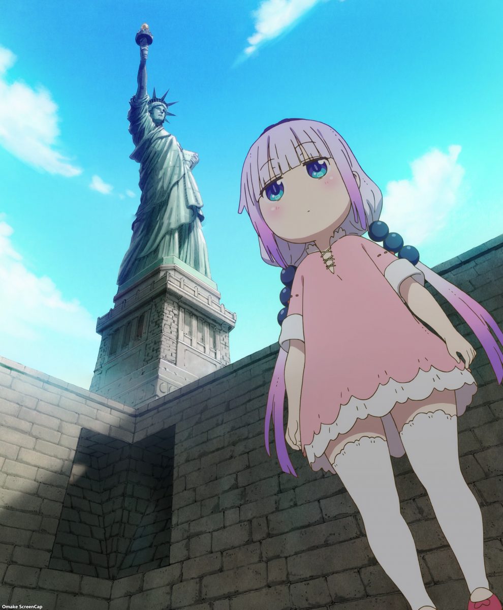 Kanna’s flying! Aw. She ran away! She had a fight with Kobayashi and took off. The quiet Kanna has trouble raising her voice. Dragons can go further than an elementary school student. Kanna still needs to mind her tail. Instead of moping at the local park, Kanna flew to New York City! Oh! Small dragon in the big city for Dragon Maid.