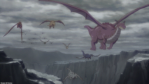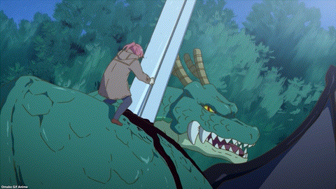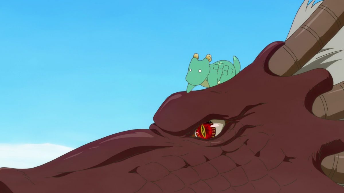 Dragon Maid puts all the pieces together of what we heard about the different dragon factions and how they relate to war against the gods. The more the Emperor of Demise speaks, the more sympathetic he becomes. I love the variety in dragon designs. I enjoyed the scene of dragon bodies throwing themselves into war, breaking apart, and recoalescing. Pointless, endless war. But look at cute, baby Tohru! Her name comes from a fantasy author in Kobayashi’s world. It’s not plagiarism if it comes from the future and from another place. Loophole! Shouta’s dad knows powerful magic. So, Tohru is not Thor… Dragon Maid is so convoluted! Ha. Damocles likes how humans do amusing things and create fascinating objects.