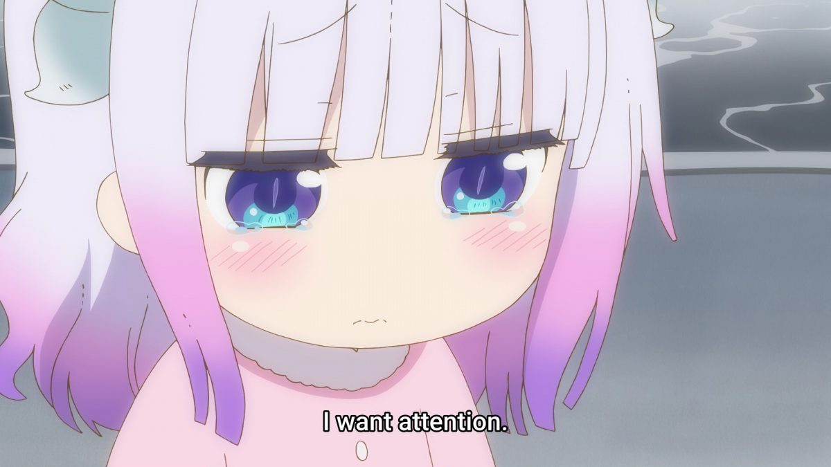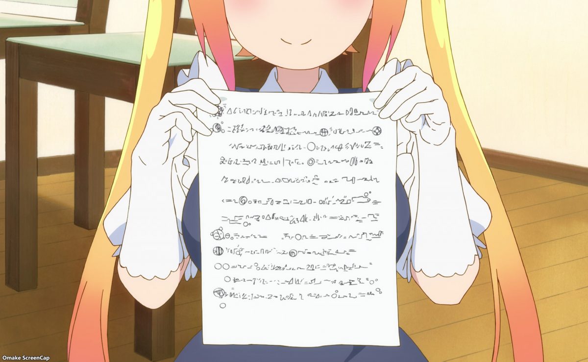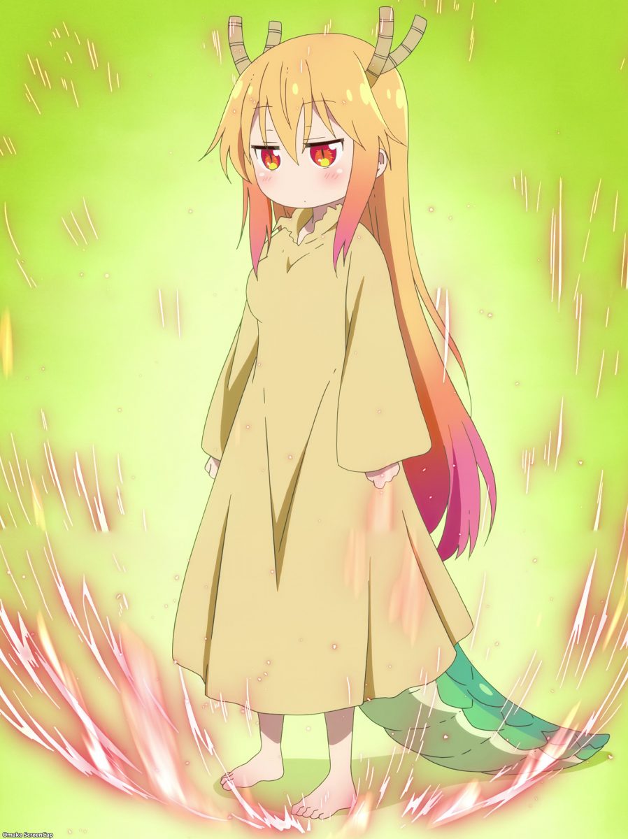 Tohru seeks advice on how to make Kobayashi’s sore back feel better. Later, both Tohru and her father explain why she came to Kobayashi’s world.