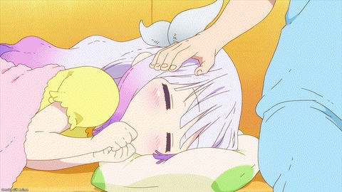 Let’s hear Tohru’s version of things. Human form Tohru on the first try. She’s got hands! Tohru’s memories intersect many of the dragon flashbacks from the first and second seasons of Dragon Maid. Baby Kanna! She didn’t get along with her father, also bearing the name Kanna Kamui. He looks like a dragon bear, fitting for an Ainu storm god. He didn’t give baby Kanna attention, while Damocles was a good dragon father.