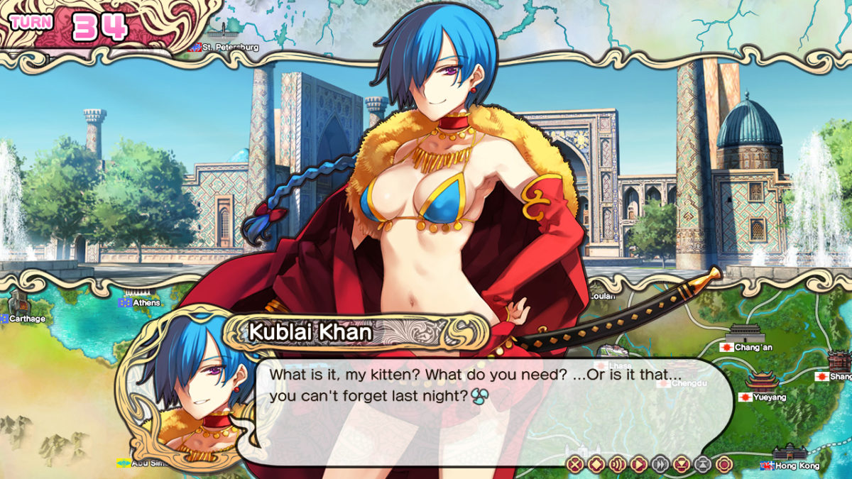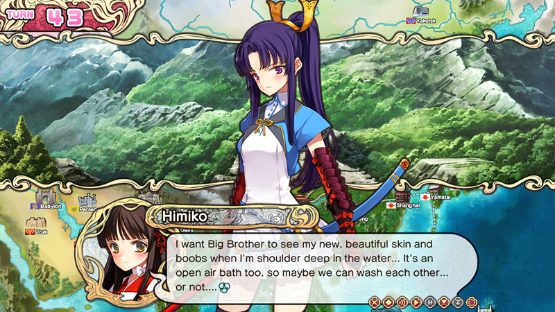The game features over 70 historical characters, drawn by the renowned artist Oyari Ashito. Eiyu*Senki – The World Conquest is a tactical R-18 turn-based strategy game.