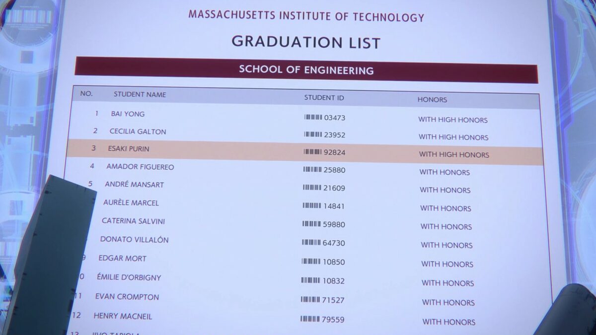 Of course. The only solution is to break in. What the…? Where is Purin’s furniture? Is this not her primary residence? The only thing in the room is a Subzero Freezer. We just watched SAC_2045 toss Smith in a freezer. Is the real Purin Esaki inside there? Ha! These guys don’t hesitate to break into anything! Even Section 9’s secure records. I love it. The digital Tachikomas are so cute! Purin graduated top-three in engineering at MIT. Then she went to Teito University in Japan. Is that supposed to be like Toudai (University of Tokyo)? Whoa. According to those records, Purin’s birthday is July 9th, 2022. Ooh. The Tachikomas found someone to interview.