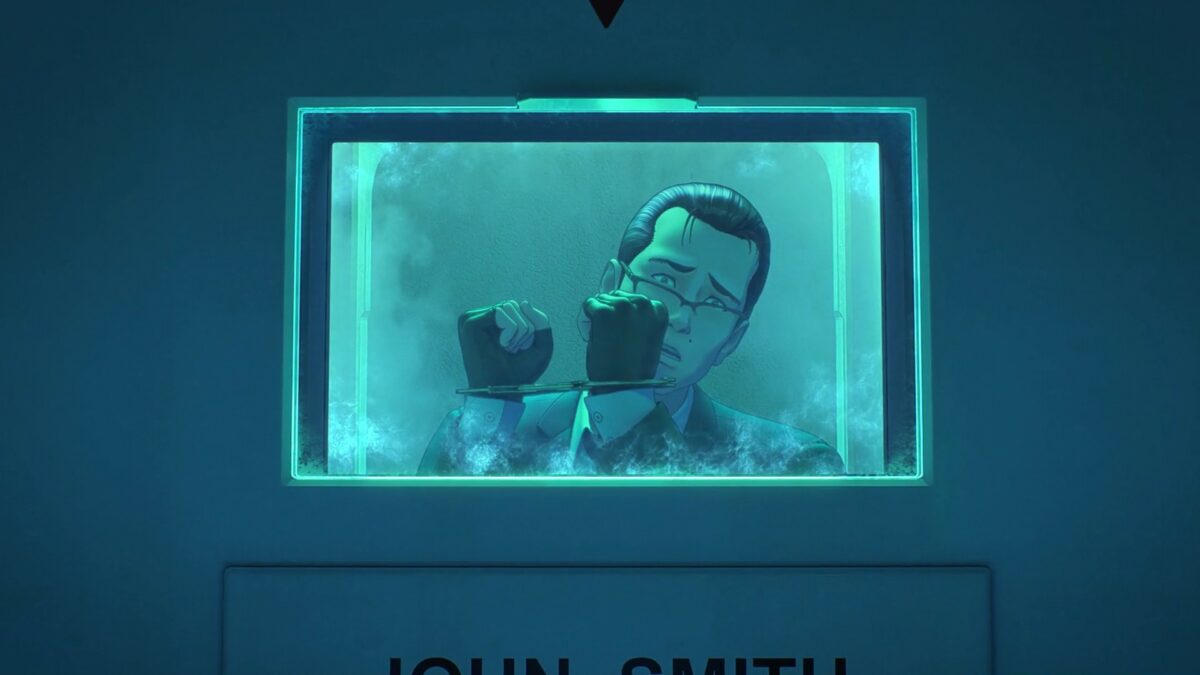 That’s enough out of John Smith in SAC_2045. Section 9 already put his name on a placard. Chill out, dude. Section 9 needs to chill out too. The government needs to rule them out of the assassination attempt on Prime Minister Tate. They worry that Purin, who studied at MIT, might have a connection to the Americans. Ishikawa confirms that Purin developed a fever when the other post-humans did. That’s the telltale sign, but is it a coincidence? Motoko adds that Purin hasn’t acted like any post-humans they’ve dealt with. Aramaki is sure Purin wasn’t an American spy, but it’s based on classified information. Aw. Purin must be dead if investigators wheel her body out of the building instead of ambulance workers.