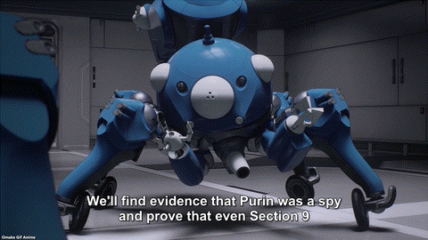 During Section 9’s confinement after an assassination attempt, the Tachikomas investigate Purin’s past to prove her innocence.