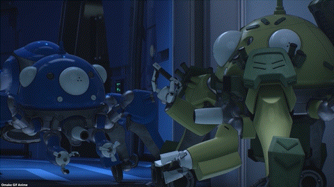Takashi is everywhere. And nowhere. Togusa can’t connect to the internet. Hey, Ghost in the Shell. That corner smoke shop without a street corner doesn’t look suspicious. Oh, no, not at all. Will there be a pay phone in there? Ha! So old-fashioned! He called Batou. And the Tachikomas answered! Togusa saw a sunset so beautiful that it made him cry. Or it was the first one he saw without all those annoying popup ads. We’re supposed to suspect Room 101 purified Togusa too.