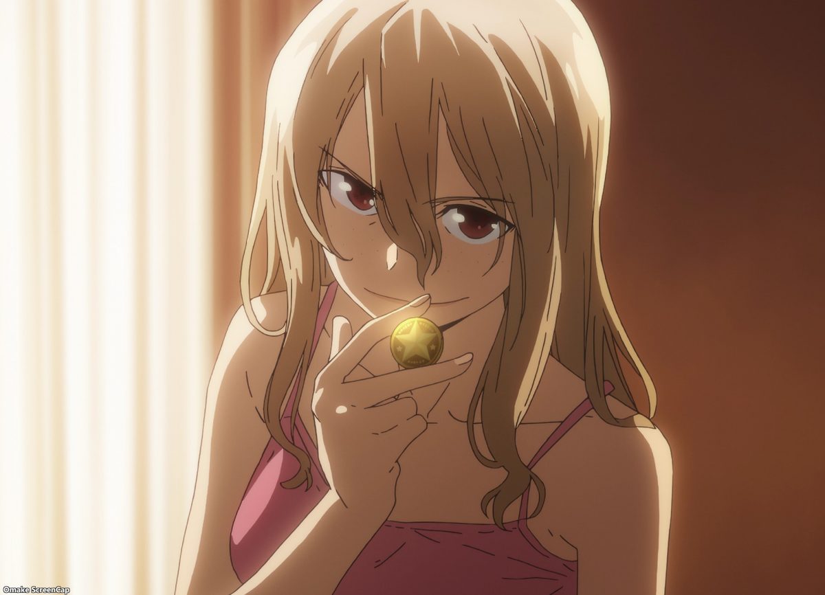 Shuuichi claims his powers came out of nowhere one day, but I think he just forgot a traumatic moment. Clair appears to know about these “monsters.” Oh, right. Here’s Clair Aoki’s formal introduction in Gleipnir. Har. She’s well developed for being two years younger than Shuuichi. Ah. Clair has a star token. That’s important.