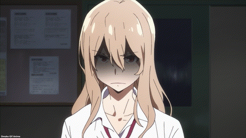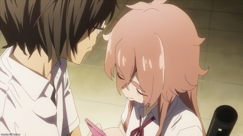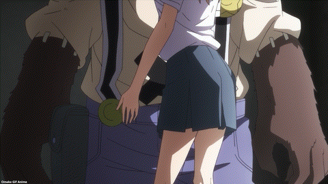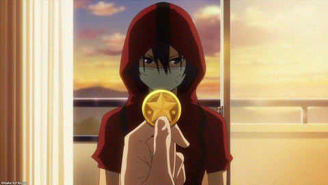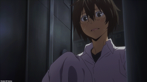 Shuuichi seems smart, but he’s giving up a recommendation to go to college. What looks like self-doubt about moving on from high school must be about that monster costume thing. I saw Gleipnir‘s opening credits. The kid has problems. Aw. Nana, the cute girl with the eyebrows, has a thing for Shuuichi.