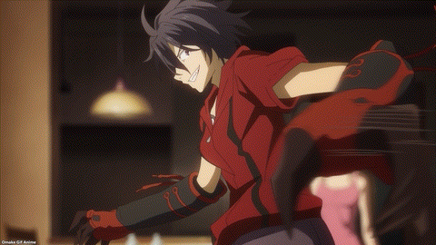 The first few scenes of Gleipnir concerned me with how it revealed Shuuichi’s character. I prefer interesting characters to carry a serial story instead of having interesting things happen to timid, boring people who only react. Shuuichi looks like he has many friends, a shy girl who likes him, and his homeroom class doesn’t treat him like a social misfit. But he’s acting like one. He’s apprehensive and withdrawn. This got on my nerves, but I’m glad I stuck with it because I saw that this is a recent thing for Shuuichi. Good. Gleipnir aims to tell its story like a mystery, so the audience will have to be patient until the action starts.