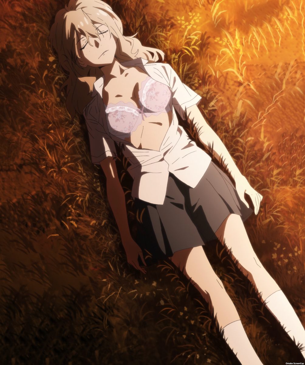 Gleipnir pushes adolescent sexuality right in your face with the girls’ gym swimsuits. Fetishizing smells. Nice, nice. As expected for a wolf character. This mysterious girl is smart enough to keep Shuuichi’s phone with her. She’s a big tease too. I like her.
