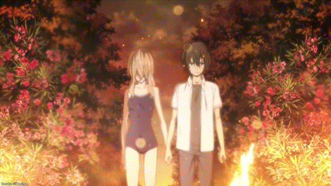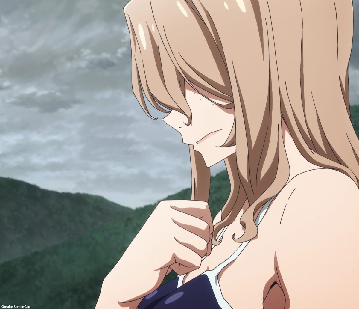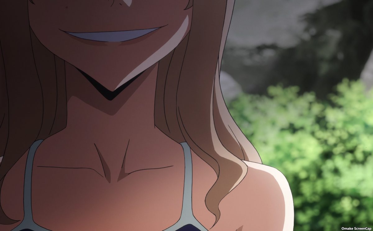 Clair thinks she still needs to be the bad cop to Shuuichi’s good cop for their team. If Clair got nanomachine powers and fused with Shuuichi like Chihiro did, their roles would reverse. Probably. Who knows yet? She says a good thing here, which is the central theme of Gleipnir — special powers aren’t scary; whoever uses them are the scary ones. There’s a monster in every one of us, whether we have Star Coin nanomachines inside us or not. Oh, Shuuichi. Hugging a girl to let you kill other people in self-defense is not that cool. Still, you get to hug Clair in a swimsuit. Big Ups, man. Also, he wouldn’t be doing this if he remembered how much he loved Elena the older sister. Okay, NTR is the real central theme of Gleipnir.