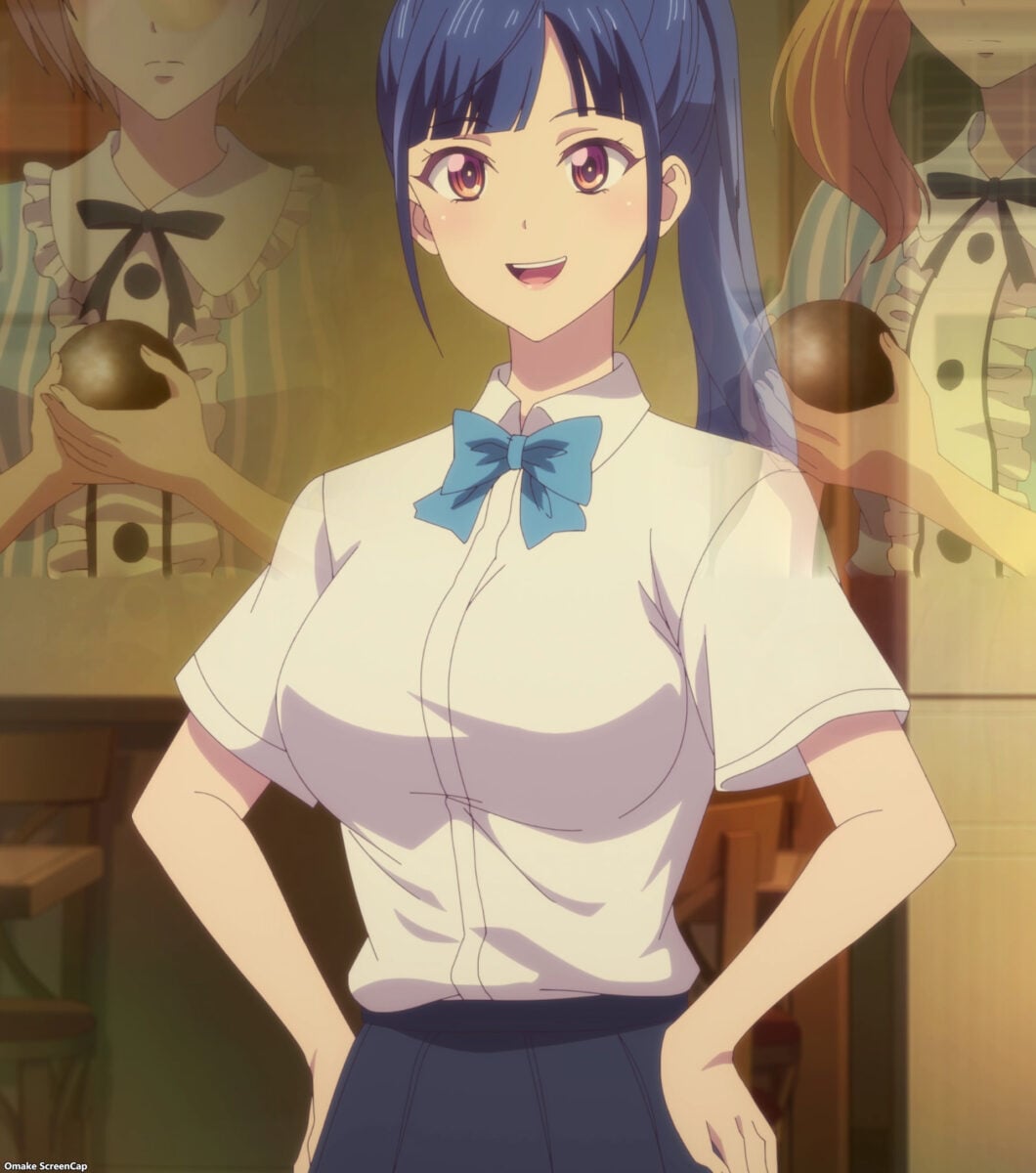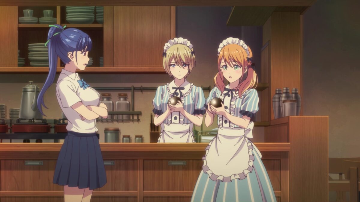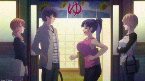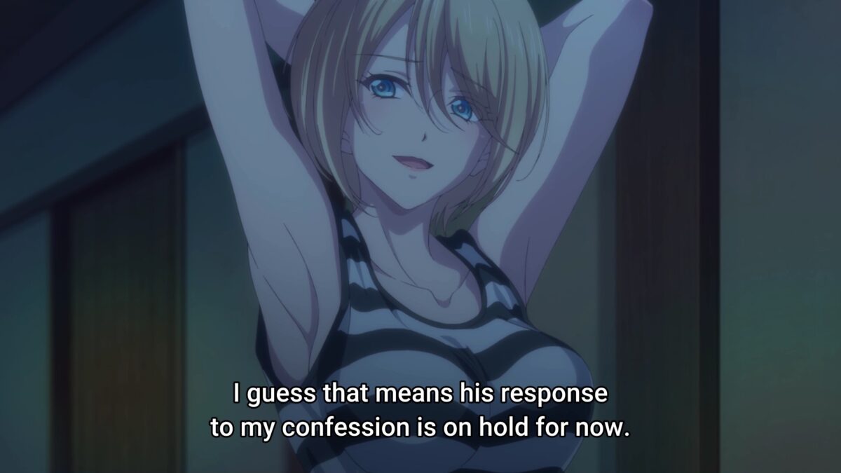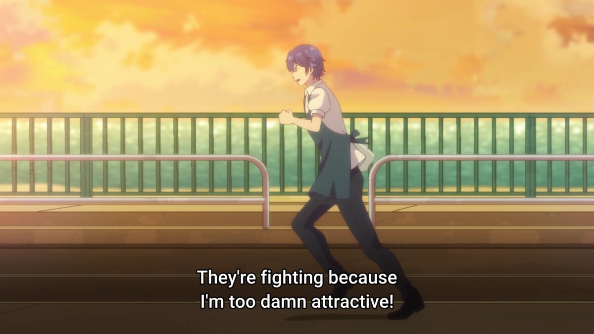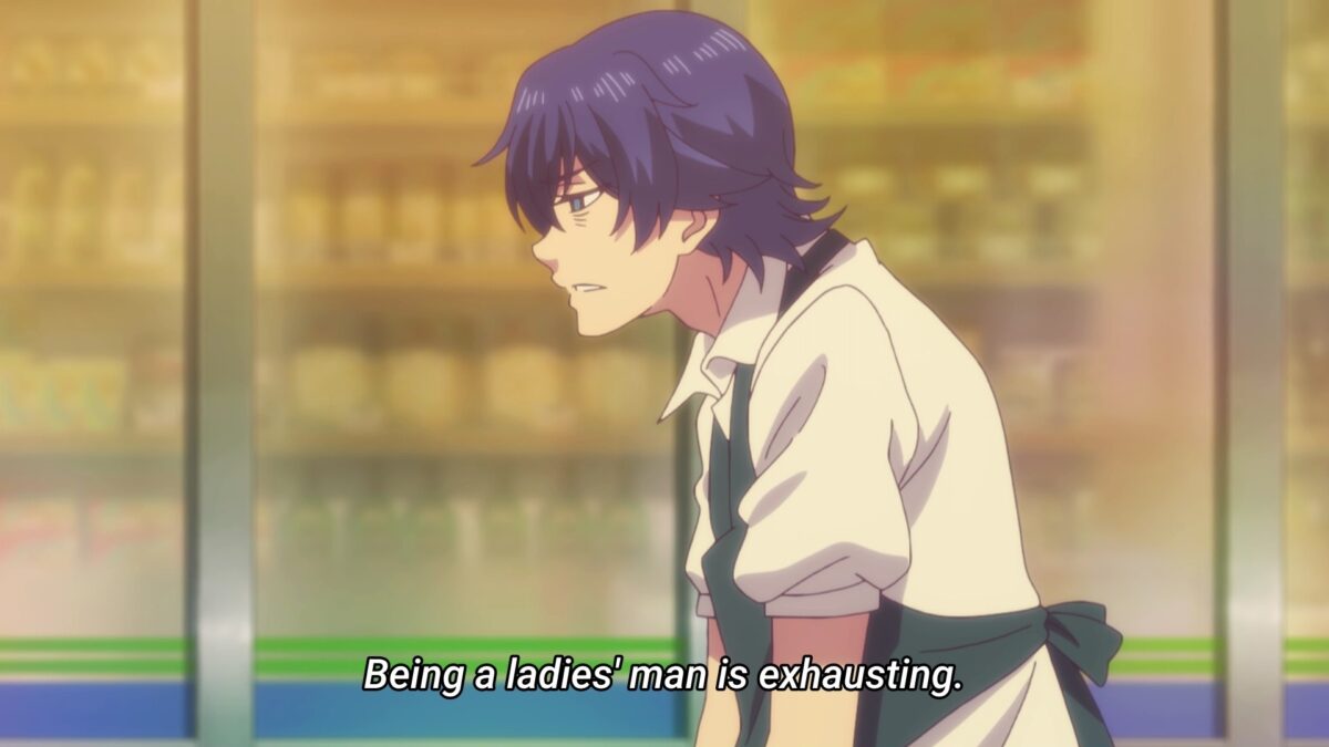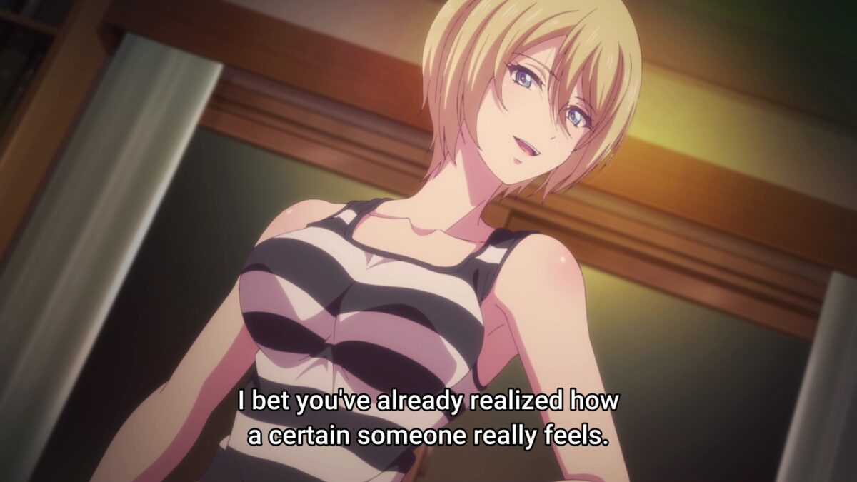 Ami doesn’t even breathe hard to rack up the points in this category. From tracing naughty shapes with fireworks to polishing mud balls like a preschooler, Ami is the pure baka of Goddess Café Terrace. Even how she lacks knowledge of how a skinny guy like Hayato can be “big” in other ways shows her dominance. Ami is like a golden retriever who loves anyone who gives her food. Obviously, she won’t be a potential love partner to Hayato this season. But I am curious about what would affect her enough to discover a romantic interest in boys.