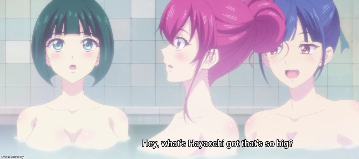 Akane and Riho make their intentions for Hayato clear at the local bathhouse.