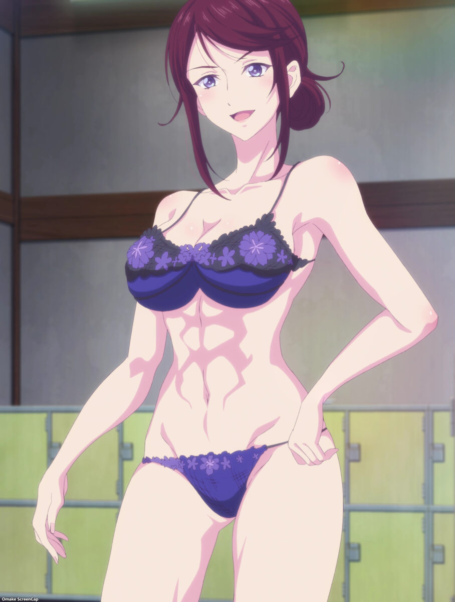 Yes. YES! Wagashiya Acchan is back with her razor-sharp abs! How is this lady not married yet? All right, all right! The boys have their share of bathhouse hijinks. Hayato is “big” in the ways that matter. Oh, Ami. Loch Ness Ami. Never change. Light bar censorship on Wagashiya! Boo! Things perk up on the girls’ side too. Wagashiya went straight for the kill shot of girl talk: who likes Hayato? At least three girls in Goddess Café Terrace know their hearts. Ouka has resisted Hayato’s brusque manly charm so far. Cough. That was hard to write. Ami loves anyone who gives her food! She’s a puppy dog! She loves Wagashiya Acchan too!
