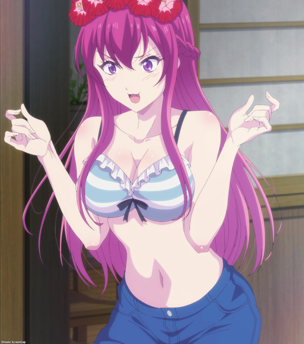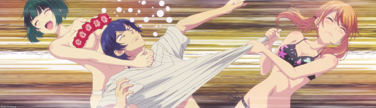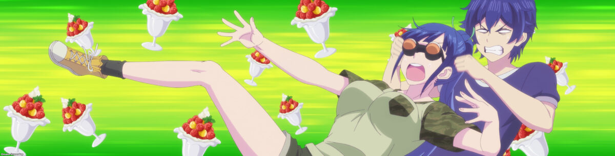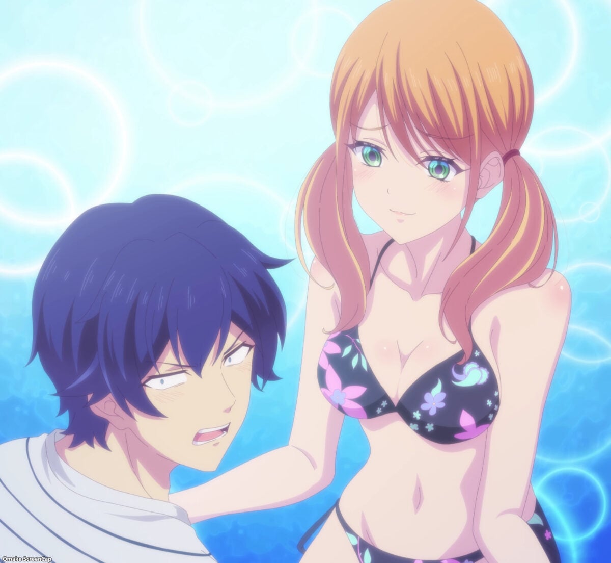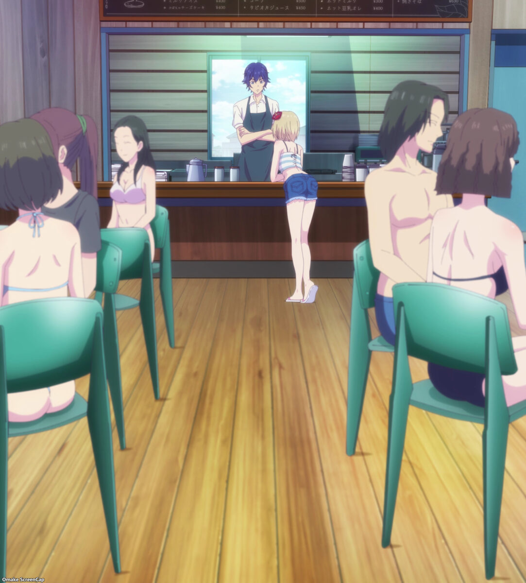 Ami ran away with most of the Baka Charm points in the Goddess Café Terrace episode, but Hayato poached some away. Ami’s photobombing is on point and viral! But her and Hayato’s continued chuunibyou military otaku role-playing exasperates their roommates. Hayato even made an Evangelion reference as he dubbed the Familia Beach Hut “Type 0 Kai.” Then he blamed the navy for not approving the name!