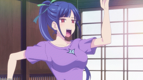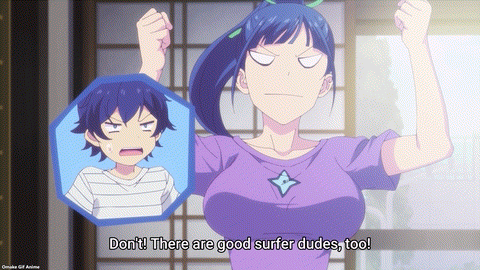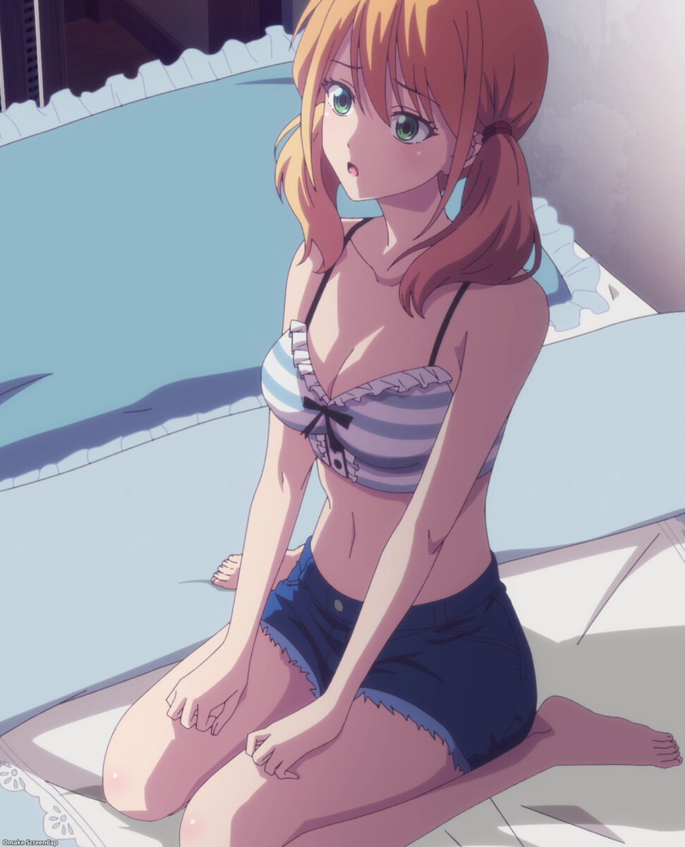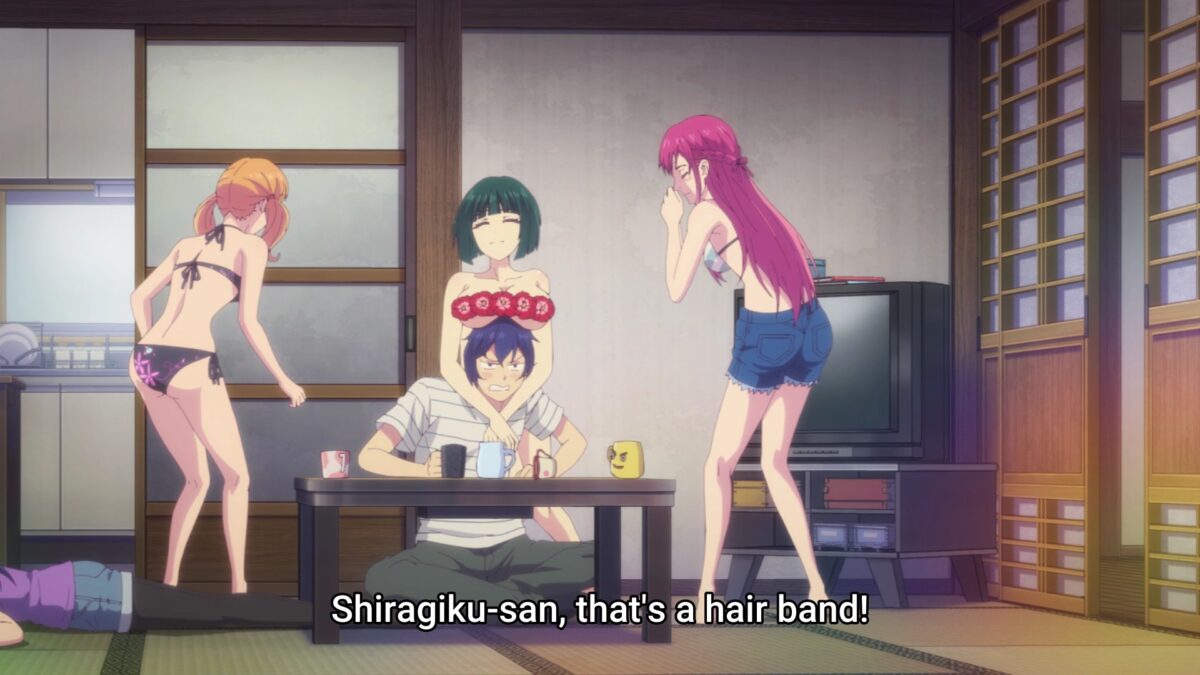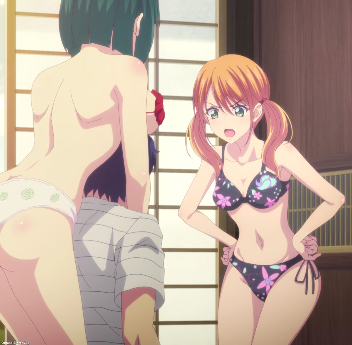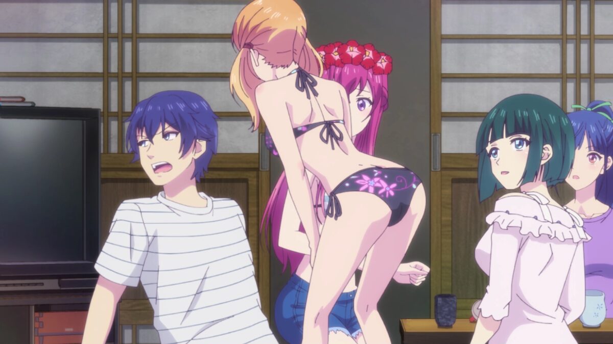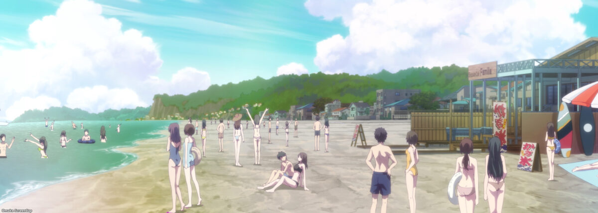 Ami ran away with most of the Baka Charm points in the Goddess Café Terrace episode, but Hayato poached some away. Ami’s photobombing is on point and viral! But her and Hayato’s continued chuunibyou military otaku role-playing exasperates their roommates. Hayato even made an Evangelion reference as he dubbed the Familia Beach Hut “Type 0 Kai.” Then he blamed the navy for not approving the name!