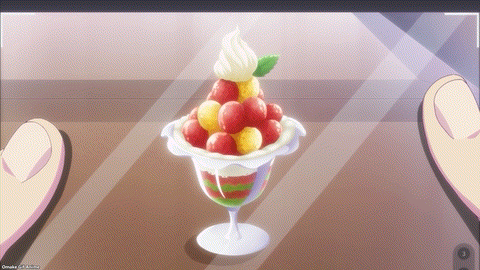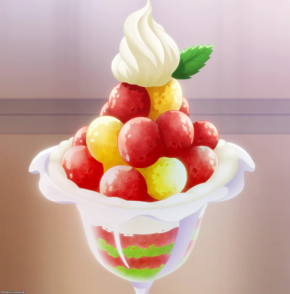 Here comes the drama for Goddess Café Terrace. Riho is overworking again. Heat, dehydration, not eating. Add in stress from jealousy, and boom! Collapse! Thanks for letting us know whose turn is next for the bathos meter. Abandonment issues stalk Riho. Headpats are her reassurance! Wow. Three omake comic strip panels in one episode.