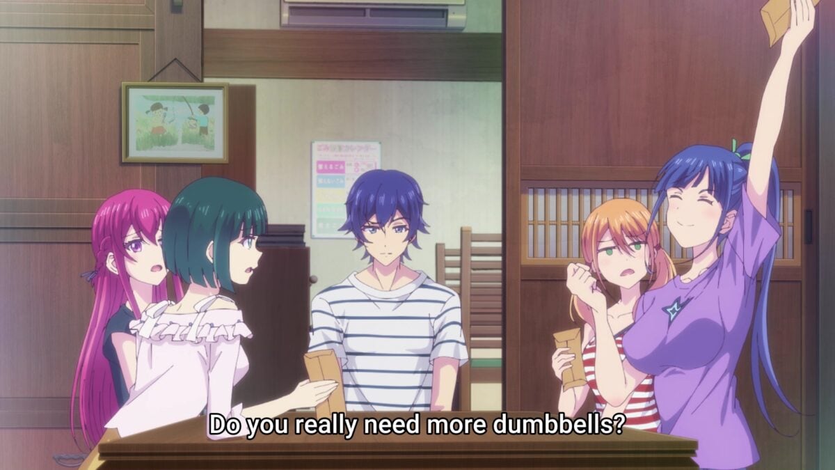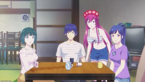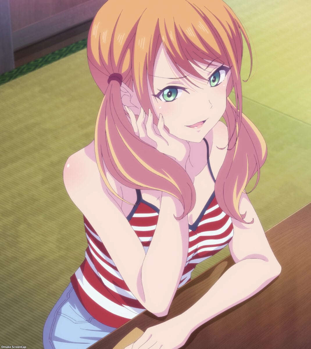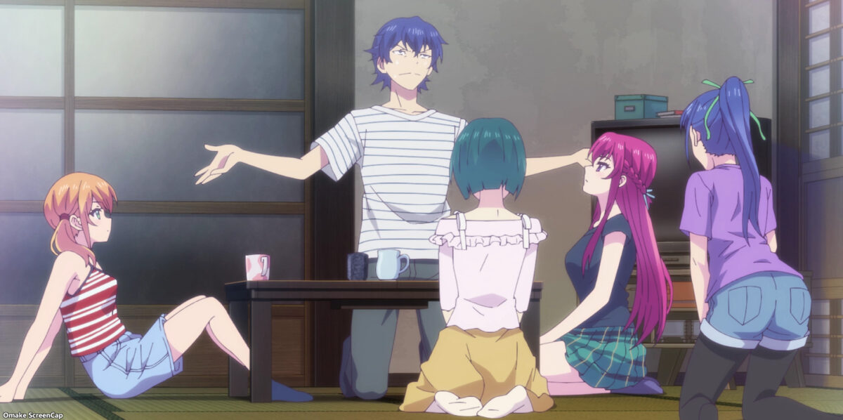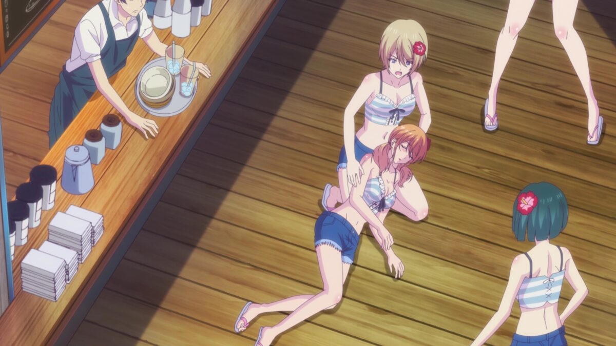 The girl feels she needs to be of use to the household. Otherwise, her new family will disband for financial reasons. Also, she requires affection and approval from the center of that new family. That’s why Riho feels irritation at the other girls receiving attention from Hayato or when they don’t look like they’re contributing to the success of the family business. The foreshadowing for Riho’s melodrama arc started when Hayato noticed how late she stayed up, working on the café’s social media presence. The culmination came when Riho collapsed after not taking breaks during the Seaside Café Familia’s first day of operation. Correspondingly, the preview for the next episode shows Riho dropping a bucket load of tears in Hayato’s lap.