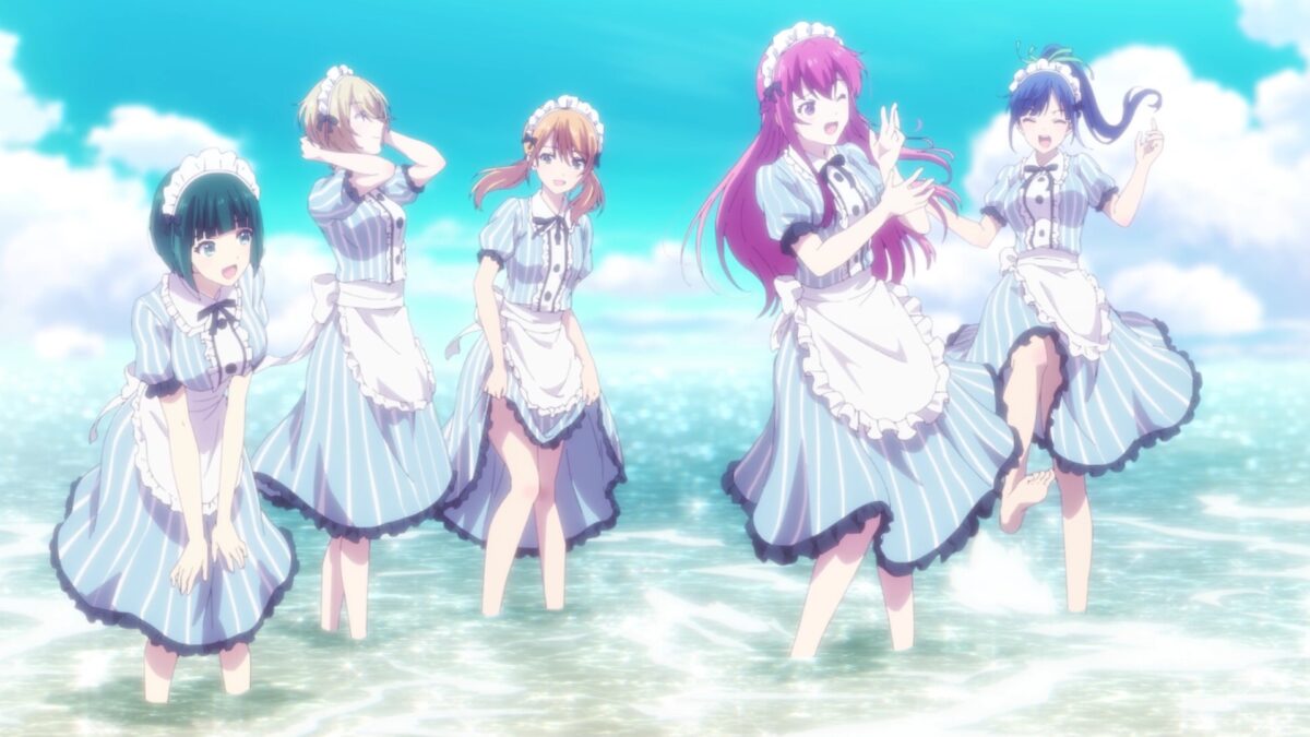 Riho gets all the points in the Goddess Café Terrace episode by inspiring Shiragiku and Ouka to make new food and uniforms for social media images. Now stop playing tug-of-war against a drunk Shiragiku with Hayato’s body.