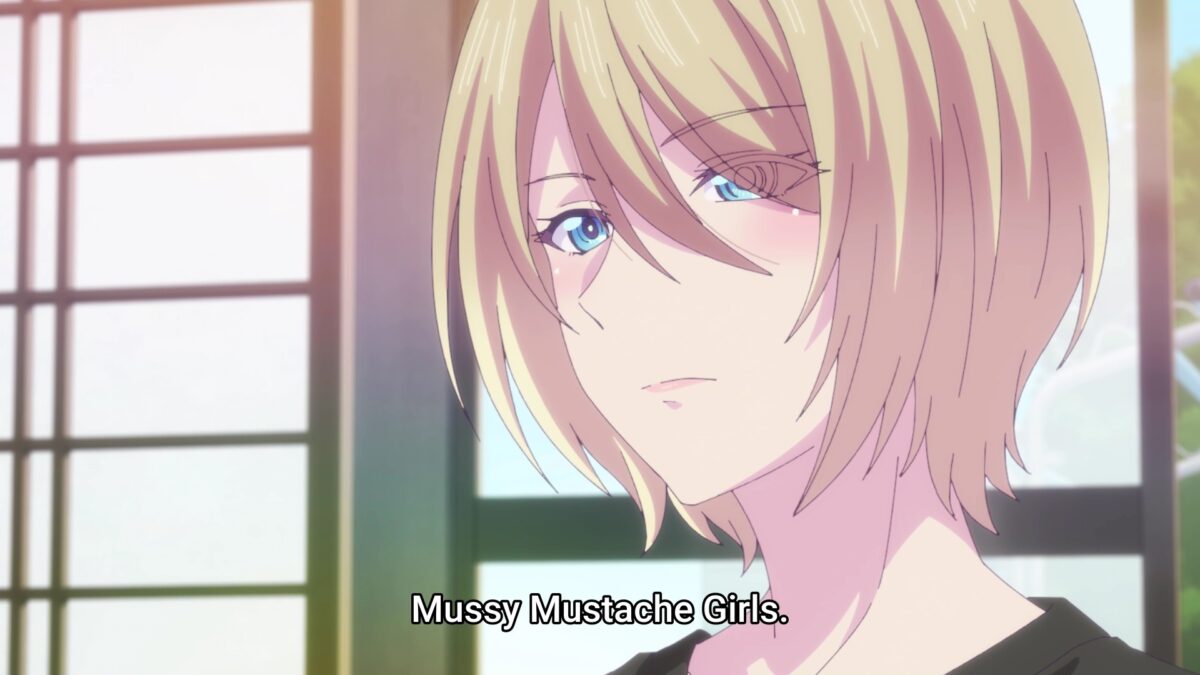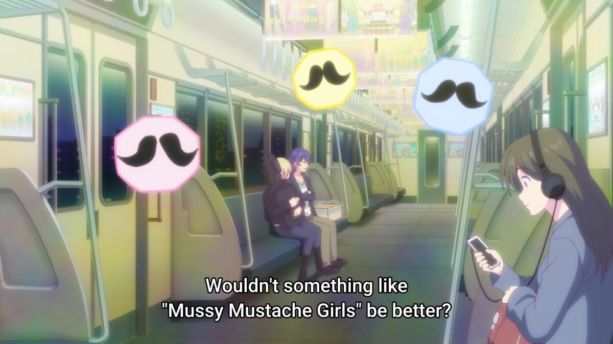 Ami all day, and Ami all night. Dosukoi! Akane showed some Baka Charm by asking about a ridiculous band name. I like what Goddess Café Terrace did with that running joke because we never learned what Akane’s band’s original name was. More points go to Hayato for suggesting “Mussy Mustache Girls.” But Ami stole some back from them both by donning her mustache glasses.