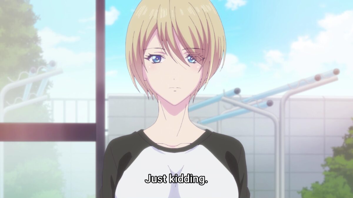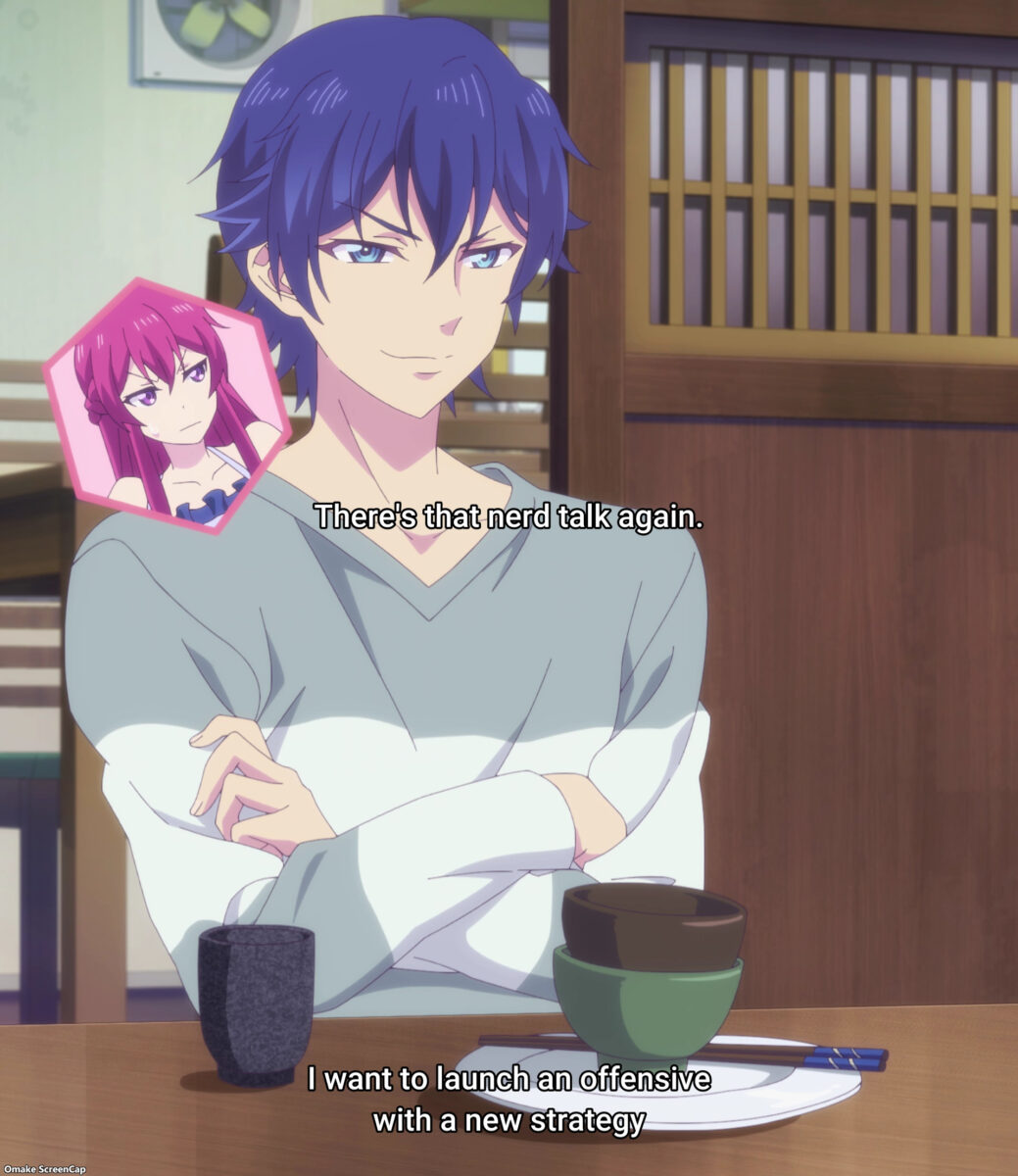 Hayato’s time spent with two goddesses in Goddess Café Terrace gave us two scenes of melodrama. Riho has taken her self-proclaimed role of Nest Protector seriously. Too much so. Her situation set up the other characters to notice her overwork and for Hayato to confront her. Typical gender roles in Japanese romance dictate that a woman wishes her male partner to support her. When a man does something to relieve a woman of the considerable burden of her duties, she will start falling in love with him. The Japanese code word for this is finding a partner “reliable.” The needle on the Bathos Melodrama Meter jumped into positive territory when Riho wondered if she could “rely” on Hayato as she remembered her love fortune. Goddess Café Terrace buttered Riho’s toast too thickly with this inserted reference.