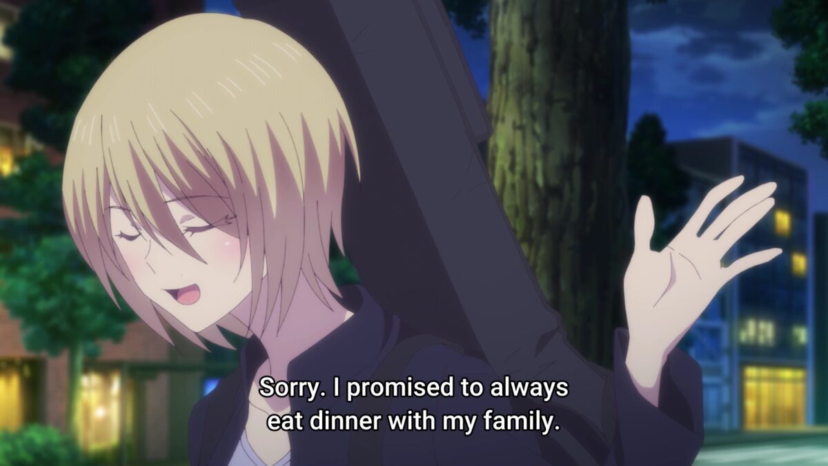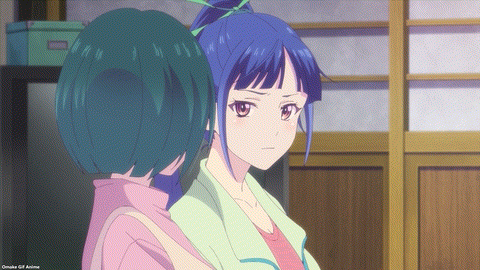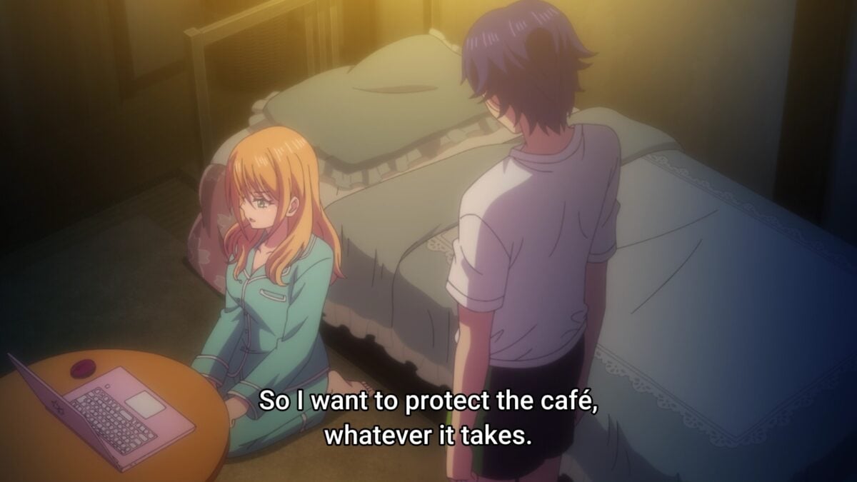 Busy! The Familia Café Terrace is hopping after the Cherry Blossom Festival and Riho’s social media engagement. And there she is, come to save the day! I see hints that Riho is putting in too many hours. Geez. Ouka is so quick to nag Hayato. Oh? Akane noticed Riho working too hard in the café. Yup. The Goddess Café Terrace social media influencer schedules posts in the dead of night. Using Windows 10 on her pink laptop. Ah. Riho tells part of her origins story. Grandma took her in and told her not to worry. Riho wants to “protect the café” as gratitude and duty. She had a falling out with her mother, and Riho dresses differently now. Hayato’s words echo what Grandma told her, so they hit Riho in the feelings. Watch out! Head pats! Right in the feels!