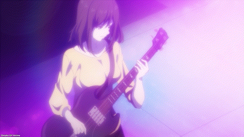 Welp. Chuunibyou Hayato is officially a thing in Goddess Café Terrace. Ah. It’s Akane’s turn for harem points. Akane won’t tell her roommates what her band’s name is called. Fishy business? Uh. Ami thinks that means tasty fried squid. We know what that squid smell reminds most people of. Efficient storytelling. A broken toaster oven means shopping in the city, which leads directly to Hayato giving up on a movie to watch Akane’s band perform in a dive bar. I didn’t say it was good storytelling. Just efficient. The dude needs to stop talking to himself out loud. Oh well. It’s the only way the girls will learn his true feelings. Akane rocks! Hayato smiles like a hentai protagonist without eyes.