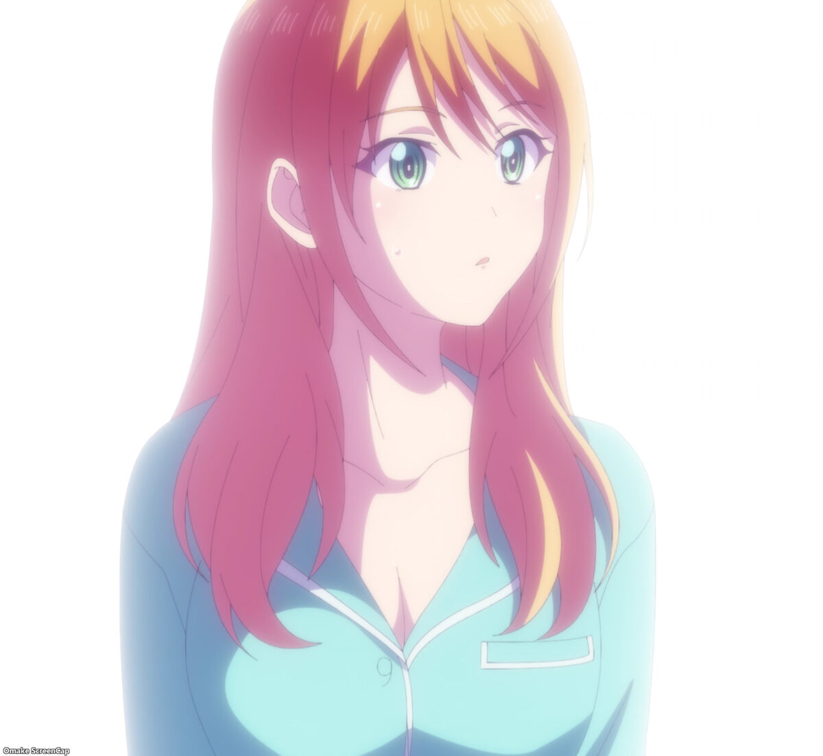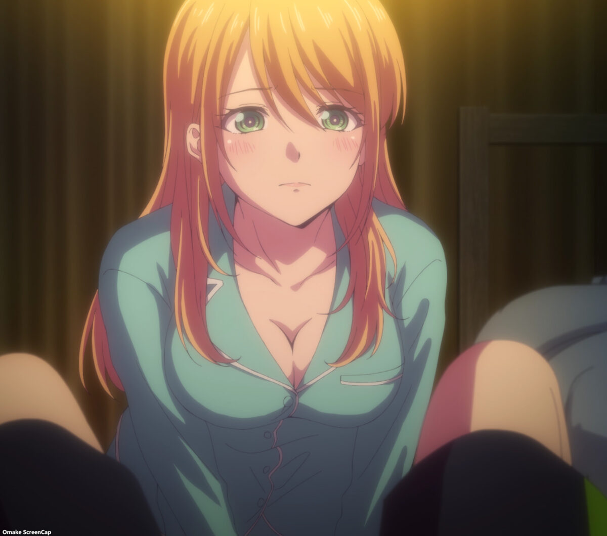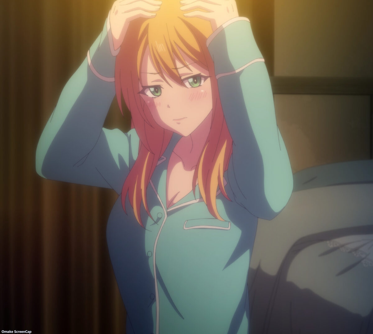 Shiragiku scored points without drinking any alcohol. All through flashbacks. Ami aided by asking her about stinky smells in a funny recurring joke. Then she made her roommates remember how she’s drunkenly thrown herself at Hayato several times. The girl-talk scene was the only source of fanservice in the Goddess Café Terrace episode, and they were all recycled! Thank goodness the preview showed more in flagrante delicto coming up.