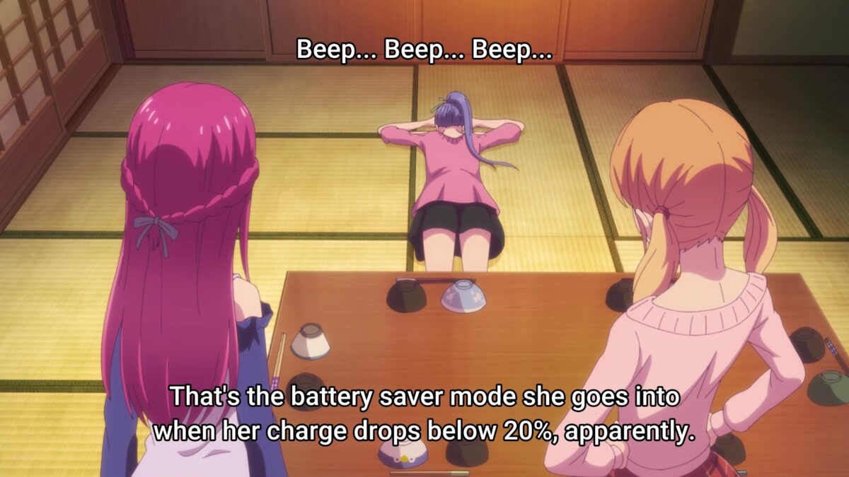 When I devised the harem point system with five categories in the first episode review of Goddess Café Terrace, I never expected the characters to openly claim their archetype. I expected each episode to show the girls living up to their typical characteristics and for one or two others to display character traits outside their type sometimes. Then Riho explicitly said she wanted to protect the café. She won all the Nest Protector points for this episode.