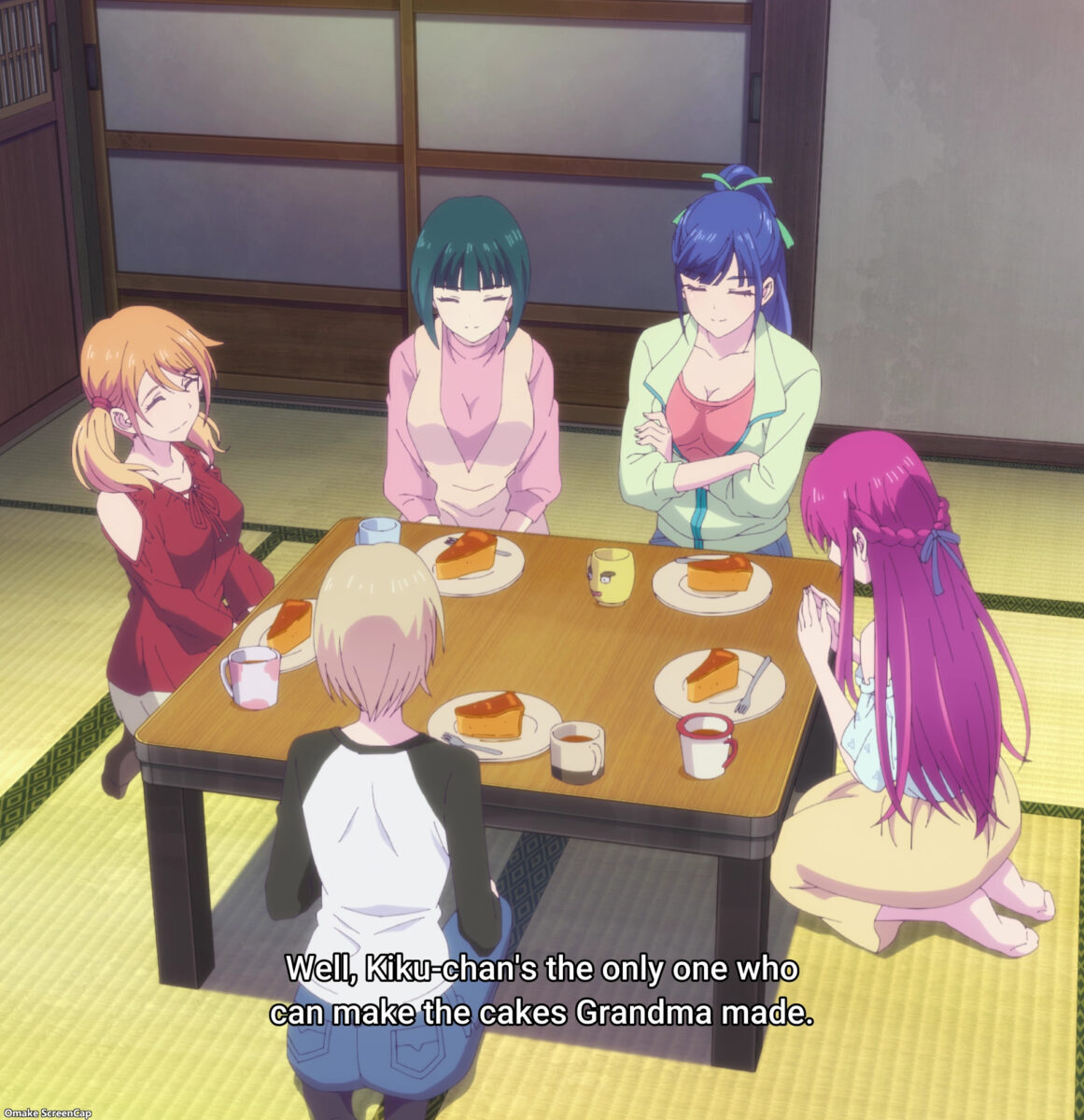 I saw only one instance to award points for Grandma’s Little Girl: Shiragiku bakes Grandma’s cakes. Oh. There was one other time in this Goddess Café Terrace episode: Akane said Hayato’s coffee almost tastes like Grandma’s. Does that make Akane or Hayato Grandma’s Little Girl?