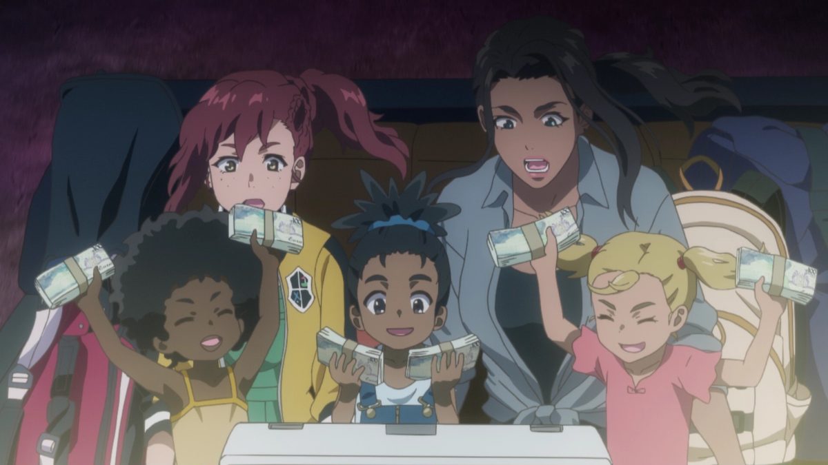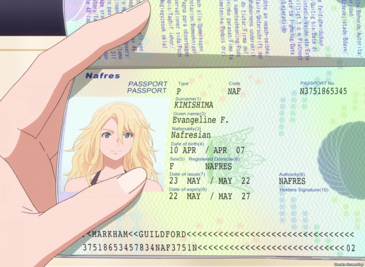And suddenly, it’s all over for BIRDIE WING! Vipère and Eve picked up Klein, Lily, and the kids. Now, they’ve got money and official documents. Those documents say the kids came from Palestine, Syria, and Somalia. Teasingly, the anime hides the birthplaces of Klein, Lily, and “Evangeline F.” from view. Eve’s last name is hidden too. Klein bought a new bar, “The White Hart.” It has angel wings in its signage. These things were all a gift from a friendly neighborhood Snake Woman. Vipère got her yacht and her man!